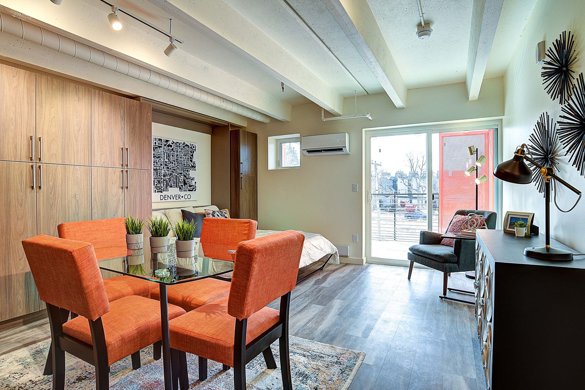 This unit opens to the community courtyard! Experience urban living at its finest. Denver is right at your doorstep: scenic Sloan’s Lake is a short five minute walk and a ten minute walk to Dry Gulch Trail and Perry Station light rail. Steps from trendy restaurants, bars, breweries, and more. Walk to Bronco’s stadium during football season! This fully remodeled unit has been masterfully crafted to present a modern experience and sleek design. Perfect for the minimalist seeking ultimate efficiency, the cosmo floor plan showcases an open layout and upscale finishes. Features include luxury Shaw flooring, contemporary Lenox Thermafoil cabinetry, premium quartz countertops, lustrous Daltile glass backsplash, and brand-new stainless steel appliances. The functional kitchen has everything you need to whip up a home-cooked meal, including a full-size refrigerator, oven, dishwasher, and beverage fridge! A wall bed allows for the best possible use of space. Presenting lavish finishes, the three-quarter bath has a spa-like feel. Enjoy the outdoors on your private balcony! Circa West amenities include a beautifully landscaped courtyard for outdoor gatherings, a cozy fire pit and grilling area, a dog run for man’s best friend, a stylish indoor lounge area, secure indoor bike storage and convenient package concierge. Circa West is an incredible redevelopment situated in the heart of one of Denver’s hottest, up-and-coming neighborhoods: don’t miss out on this remarkable opportunity!
