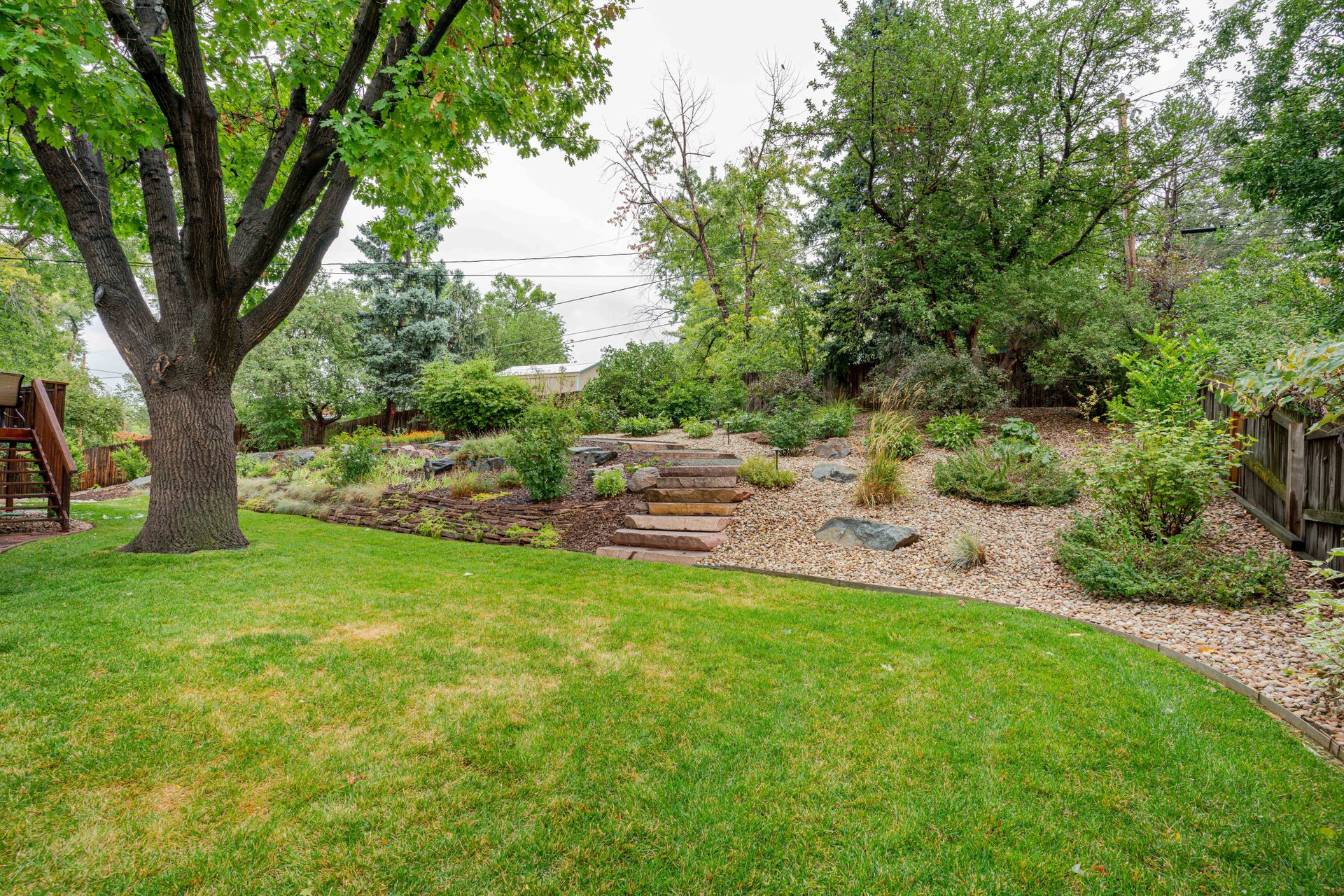 Beautifully remodeled five-bedroom with a main floor master in the incredible Ridgewood Park community! Spend time in the gorgeous, terraced backyard showcasing meticulous landscaping, mature trees, seasonal flowers, a hot tub, full fence, and shed! Step through the grand foyer that opens right to the backyard. American cherrywood floors flow throughout the upper level. Open and bright, the exquisite living room provides direct access to the newly stained and sealed deck. Adjacent, find the spacious dining area with views of the immaculate backyard. The updated kitchen presents 42-inch American cherry cabinetry with undermount lighting, stainless steel appliances including a double oven, slab granite countertops, and space for casual dining. Relax in the master suite complete with an updated en suite bathroom and oversized his-and-her closets with lighting! Next door, a secondary bedroom also presents an oversized and lighted closet. The upper level is complete with a full bathroom. On the lower level, the cozy bonus room is graced with a wonderful stone-surround fireplace. Spread out with three spacious bedrooms and a three-quarter bathroom! The green grass in the immaculate backyard stays vibrant with efficient rotating-nozzle sprinklers. The beautiful landscaping stands out with landscape lighting in both the front and back yard! Rest easy with double-insulated windows and sliding doors. Brand-new features include a garage door, 150amp electrical panel, and water heater. Park with ease in the oversized, lighted garage with storage and a new exterior access door. Ideal location near the lush Ridgeview Park, South Platte River, Breckenridge Brewery, Aspen Grove shopping center, Downtown Littleton, excellent Littleton Public Schools, and more!