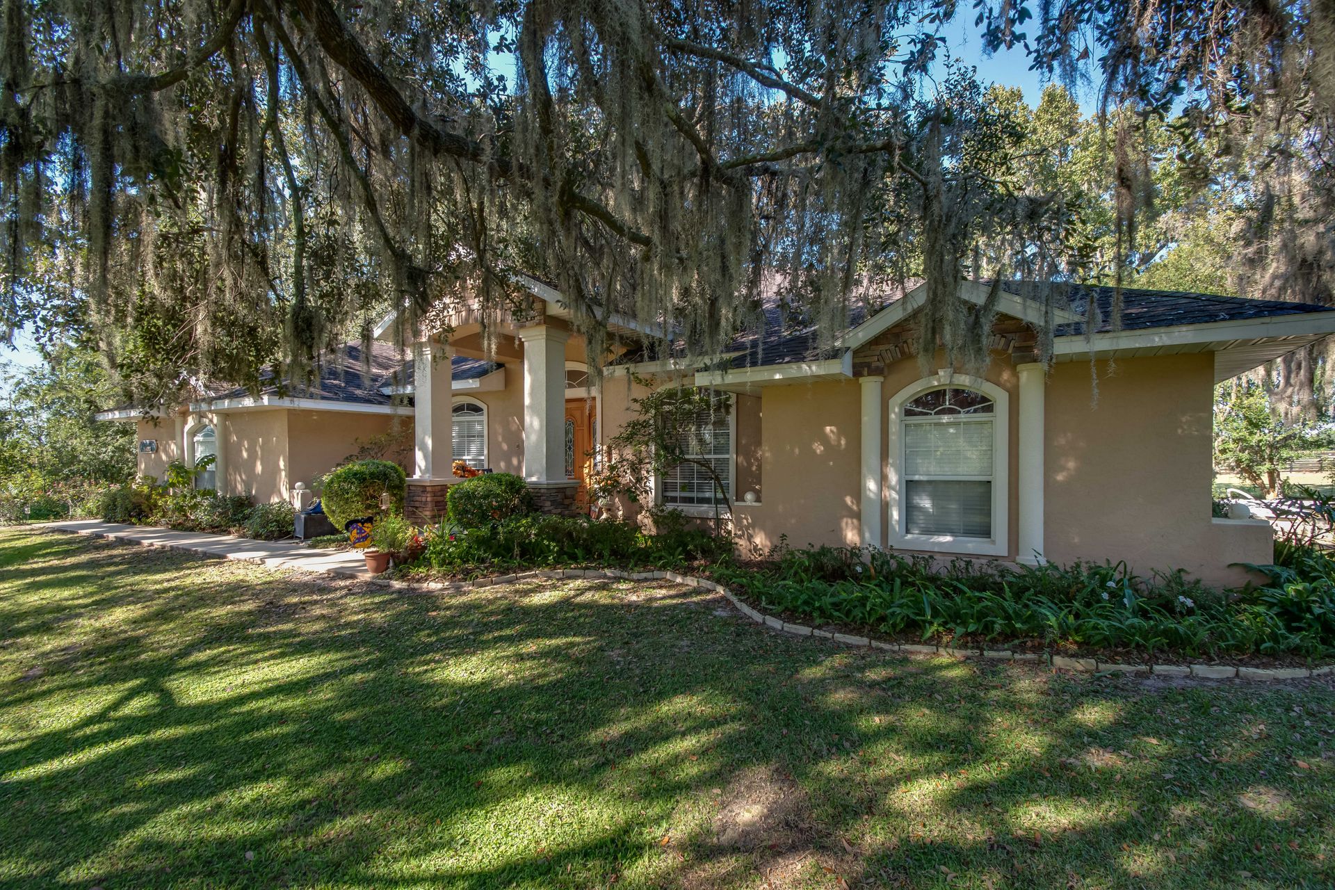 Overlooking 30+ acres of Central Florida countryside, this stunning property is rooted in Marion County history and traces its roots all the way back to the 1800’s. Originally a dairy farm, many artifacts can still be found throughout the property. A long, tree-lined drive leads to the main portion of the property, which features a stunning park-like setting with lots of mature trees and open spaces. Gently shaded by grand oaks, the 4-bedroom, 3-bath home is an exceptional space for those looking for peace and tranquility. The interiors are defined by soaring cathedral ceilings, tasteful paint choices, ample natural light, and wood flooring throughout the main spaces. The living area includes a cozy wood-burning fireplace for cooler winter nights and access to the back patio. For those who enjoy cooking, the kitchen is well-equipped with lots of counter and cabinet space, stainless steel appliances, a breakfast bar, adjacent breakfast nook and formal dining areas, and views into both the living and family rooms. All bedrooms provide ample space for relaxation, but the primary suite is especially notable with tray ceiling accents, a huge walk-in closet, and a private en-suite with dual sinks, a large garden tub, and spacious walk-in shower with dual showerheads. The home offers lots of flexibility, with spaces devoted to office space, a den, and more. To the back of the residence is a breathtaking patio area that is a true oasis with lots of foliage, a covered area, and a stunning pergola that has vining plants for extended shade. A side-entry 2-car garage is attached, and the home also includes an indoor laundry room with shelving, two wells, and two septics. Outside of the home, the property features an organic vineyard that features over 500 vines along 3.5 acres. Mature pecan, citrus, and olive trees are also present on the property. The soil is a nice, rich blend of limestone and clay that is well suited for a variety of agricultural pursuits. An income-producing billboard is also on property, and the seller is offering to credit $40K at closing towards roof replacement and pool repairs. Located less than 10 miles from the World Equestrian Center and just 12 miles to HITS, this property provides ample opportunity for those looking to be near some of the most exciting equine venues the area has to offer! Shopping, dining, event, and medical options are just 11 miles away from the property, providing ample opportunity to explore and enjoy Ocala’s vibrant community.