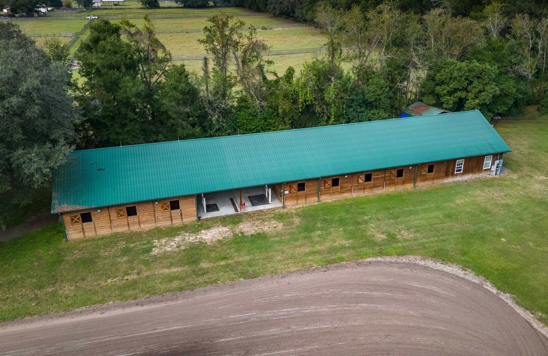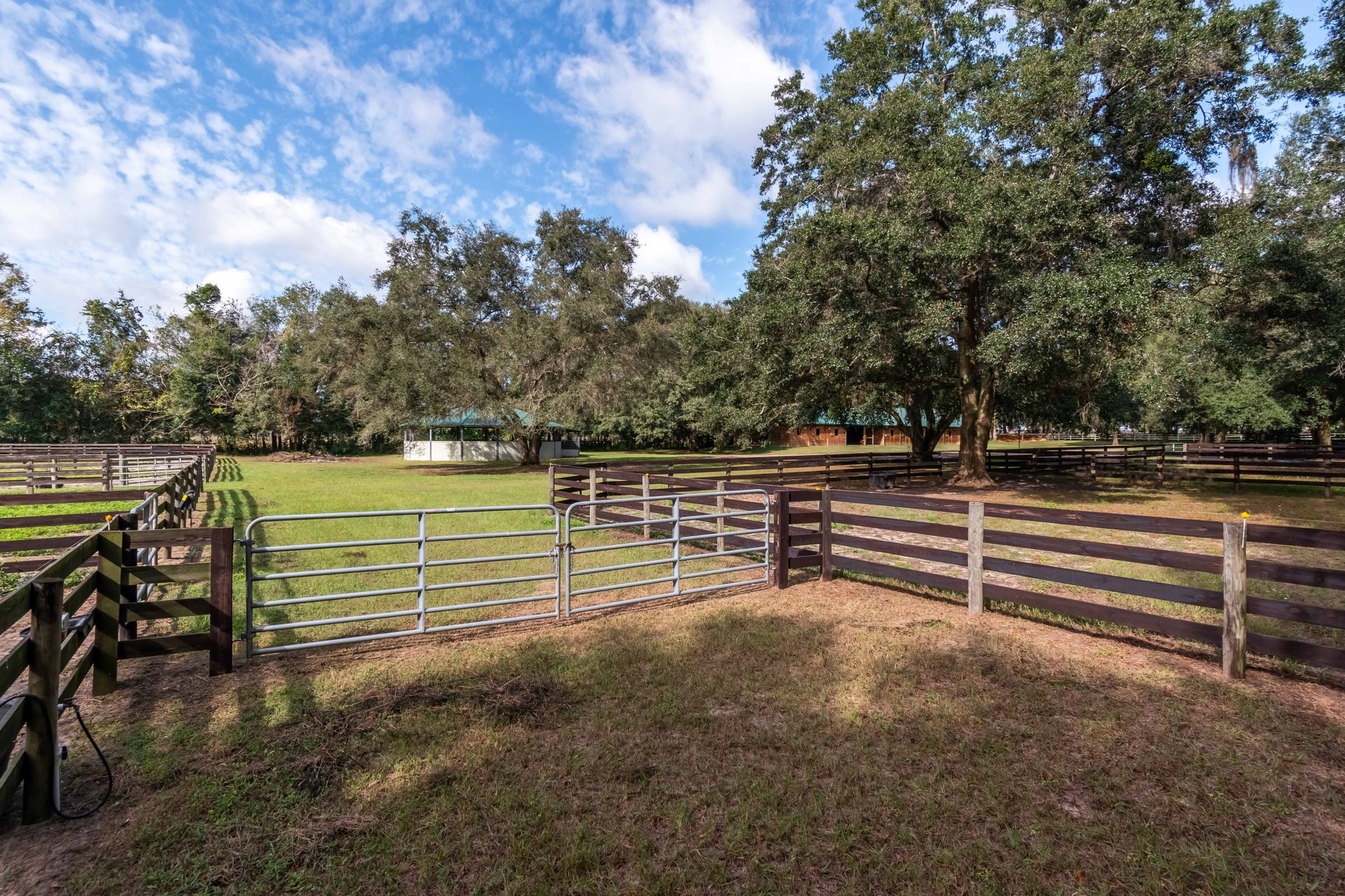 Tucked away amongst Marion County’s quiet countryside, this inviting mini-farm is a wonderful opportunity for equestrians seeking a manageable yet high quality property. Perimeter fenced with vinyl board fencing and an automatic gate, the farm offers just over 5 acres with nice, flat land adorned with mature oaks for gentle shade. A total of 8 paddocks are set up throughout the property, each of which are fenced with 4-board fencing. Serving as the true hub of the property is the large 16-stall center-aisle barn that features a variety of amenities– an integrated fly spray system, a well-appointed tack room, a dedicated feed room, and wash racks featuring hot water. The studio-style barn apartment is a great option for those looking to stay on-property and comes fully equipped with a modest kitchen, full bathroom, and washer and dryer. This space could also be used as an on-site office if desired. An additional arena and a covered round-pen are also in place, opening up the training opportunities present on the property. If a larger home is desired, this property provides ample opportunity to build one of your own from the ground-up, all while staying right on site during construction. Those looking for options to ride off-property will love the close proximity to Indian Lake State Forest, which is just 5 miles away. This property is highly convenient to multiple equestrian venues, service providers, retailers, and veterinary options in nearby Ocala– both HITS and the World Equestrian Center are just under a half-an-hour away, while the Ocala Jockey Club which was recently acquired by WEC is just 18 minutes away. For active equestrians seeking a harmonious blend of functionality and possibility, this mini-farm stands as an exceptional gem that should not to be missed!