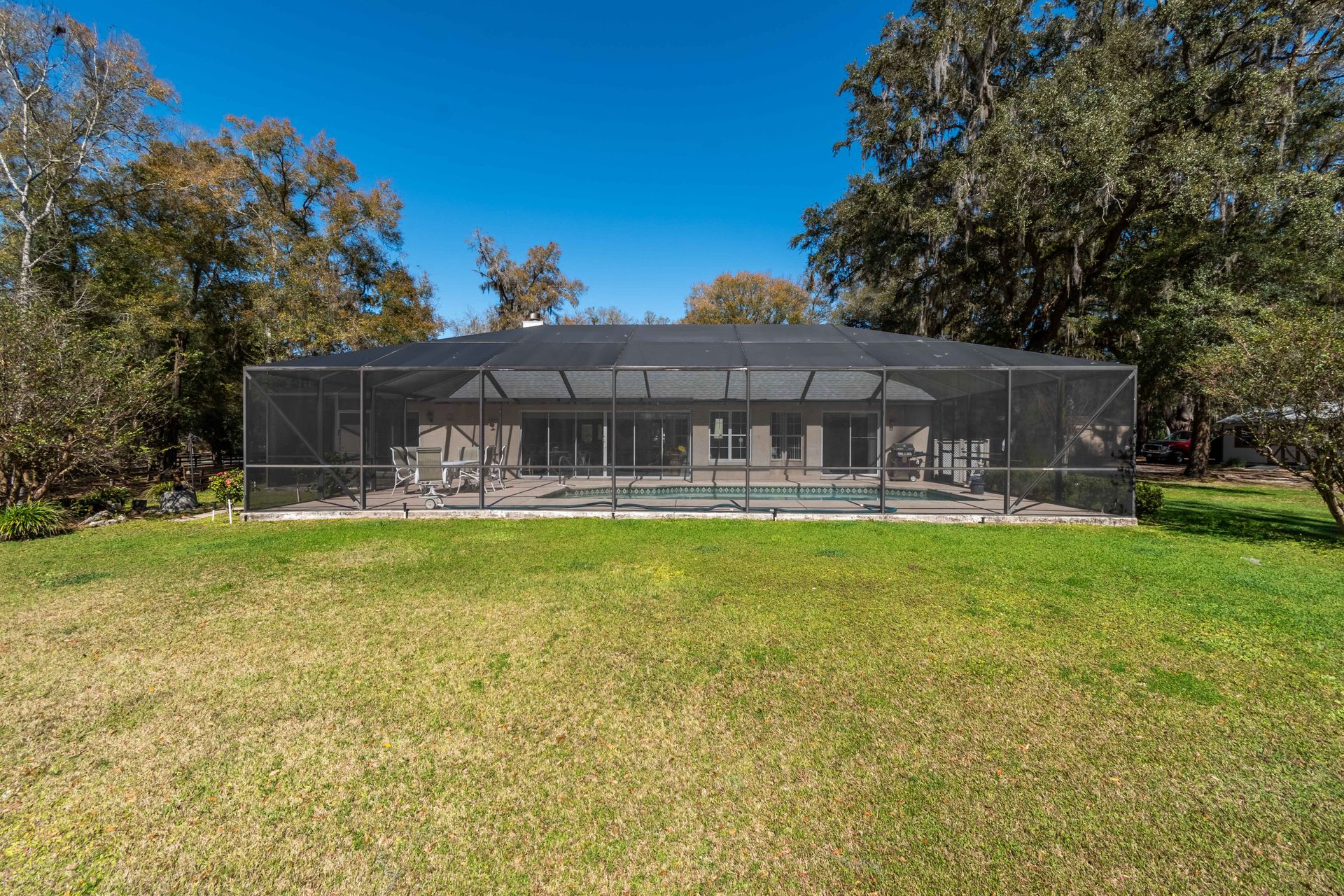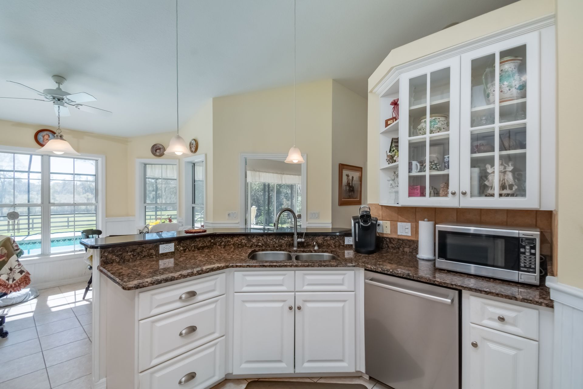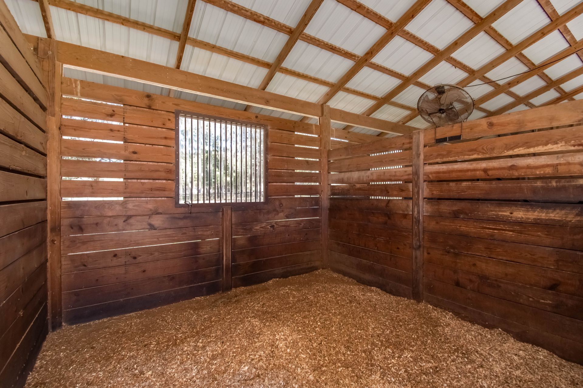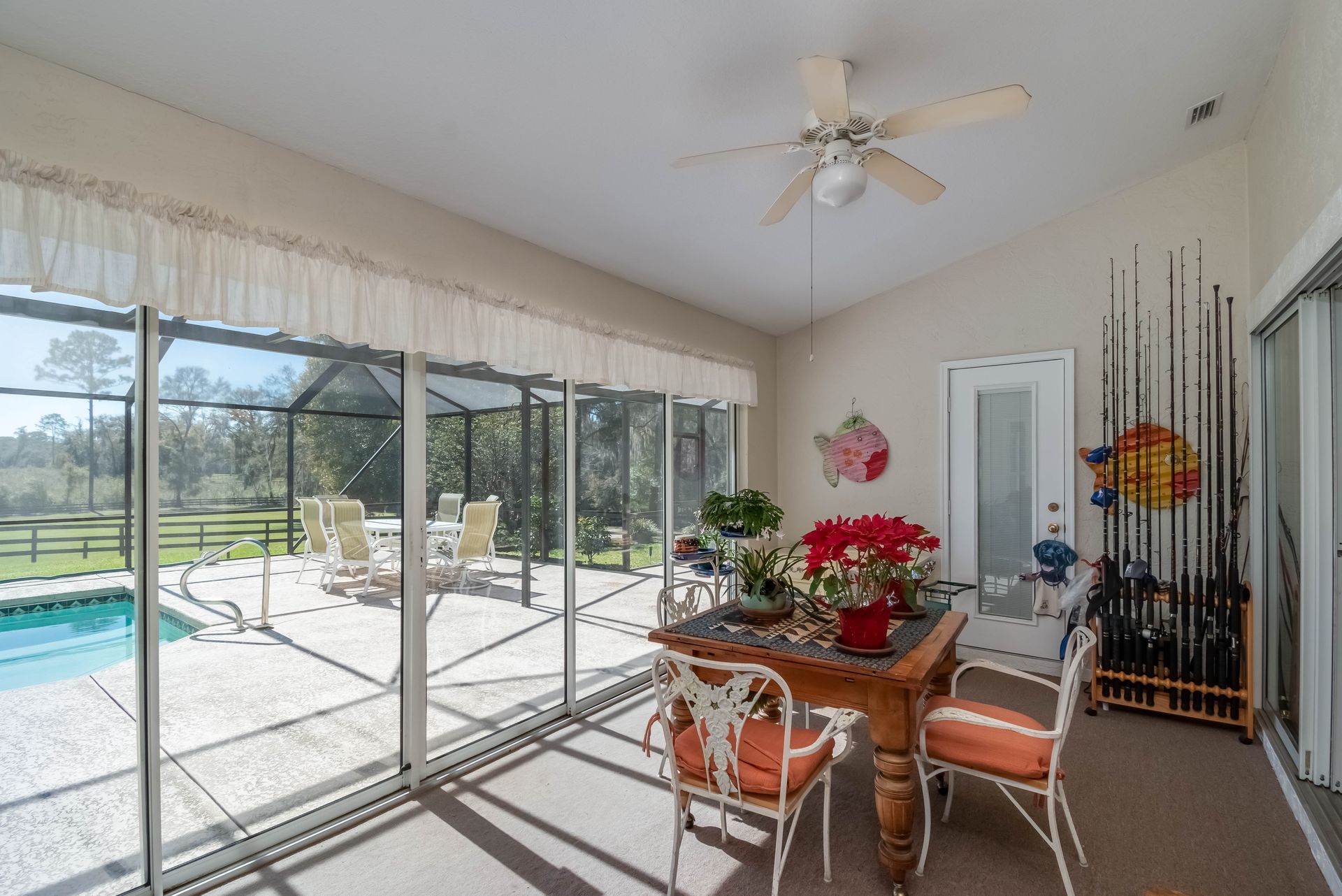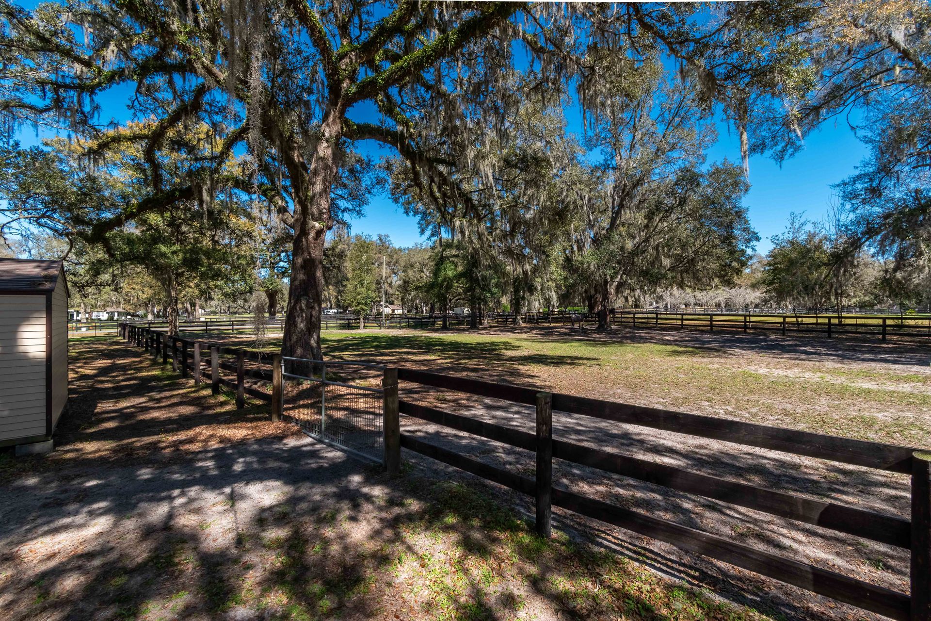 Situated within the highly sought-after Meadow Wood Farms deed-restricted equine community at the heart of NW Ocala’s Horse Country, this stunning mini-farm is the perfect blend of private and perfectly located! Fenced and gated on 5.5-acres of pristine countryside, the farm features gentle roll and mature oaks. A circular driveway, mature landscaping, and gentle shade from the surrounding trees provide a welcoming first impression of the 4-bedroom, 2-bath home. Light and bright, the interiors feature an open split-bedroom floor plan with tall vaulted ceilings and abundant natural light throughout. A floor-to-ceiling ventless fireplace serves as the focal point of the living room, flanked by built-in shelving for a sophisticated finish. Directly open to the living room is the formal dining room, which includes a modern light fixture and large windows with views of the surrounding farm. The kitchen is large and inviting, with ample cabinet storage, expansive granite countertops, stainless appliances including a gas range, and additional pantry. For less formal meals, the kitchen also includes a cozy breakfast nook which looks out to the back of the property. The primary suite is perfect for relaxing after a long day, complete with a huge walk-in closet with shelving system and private en-suite bathroom with dual vanities and a large glass door walk-in shower. To the back of the home is a lovely Florida Room, which is perfect for enjoying the year-round sunshine without the heat and humidity. Beyond is a screen-enclosed pool area which features a variety of updates including new pool screening, pool filter, new seals on the pump, and new cage around the pump/filter. A whole-home generator, installed in 2020, ensures power even during storms. Additional upgrades include a new water softener, updates to the well, new gas dryer, recently replaced carpeting, updated light fixture, recently cleaned ducts, new shingles on the roof, and much more! Well-suited for multiple disciplines, the farm features a 3-stall shedrow barn complete with tack room, hot and cold water, and 2 additional run-ins. An additional storage shed is also in place, which is currently used for carriage storage. A large pasture with auto waterer is in place, with ample potential to divide into multiple paddocks if desired. This farm is highly convenient to Ocala’s exciting equestrian show venues, with both HITS and WEC located just 20 minutes from the property and multiple feed, tack, veterinary clinics, and equine service providers located throughout the area. If you’re searching for a lovingly maintained mini-farm with the perfect Horse Country location, look no further!