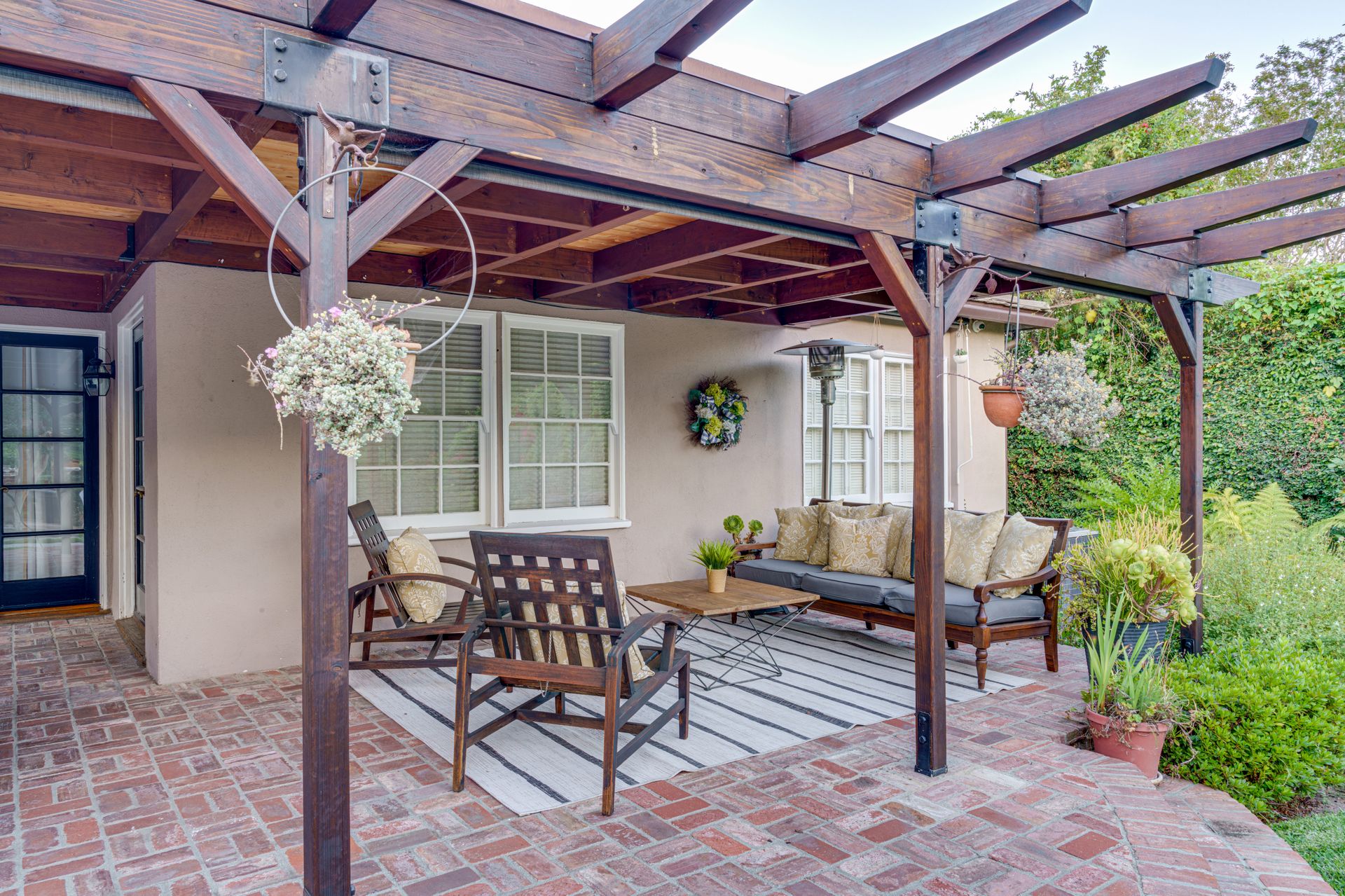 Outside, the beautifully landscaped yard is perfect for outdoor entertaining, with a built-in kitchen island, a redwood covered patio area, ideal for summer barbecues and a lush garden for those with a green thumb. The property also includes a detached, oversized 2 car garage and a long driveway for additional parking. There is an automatic driveway gate.