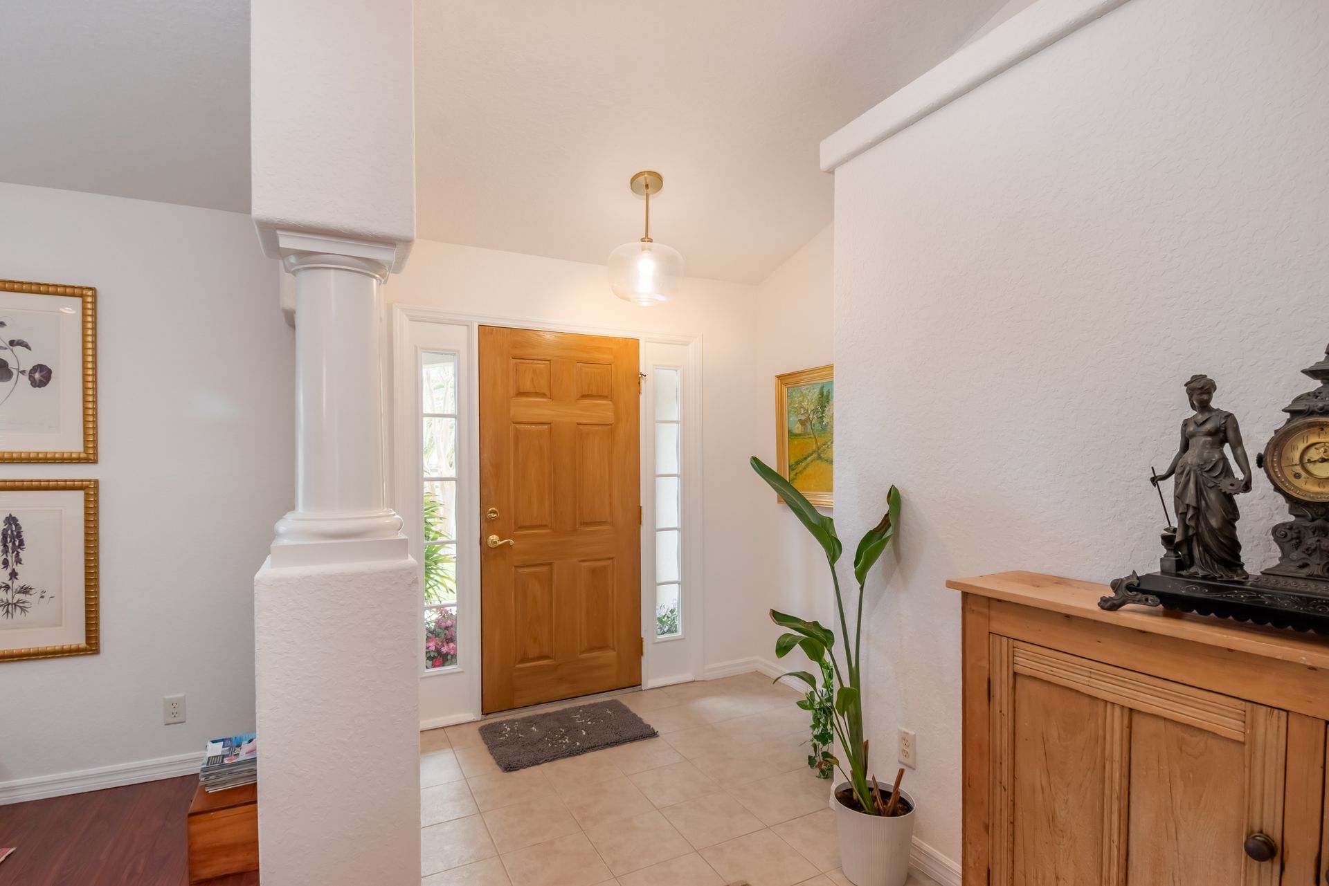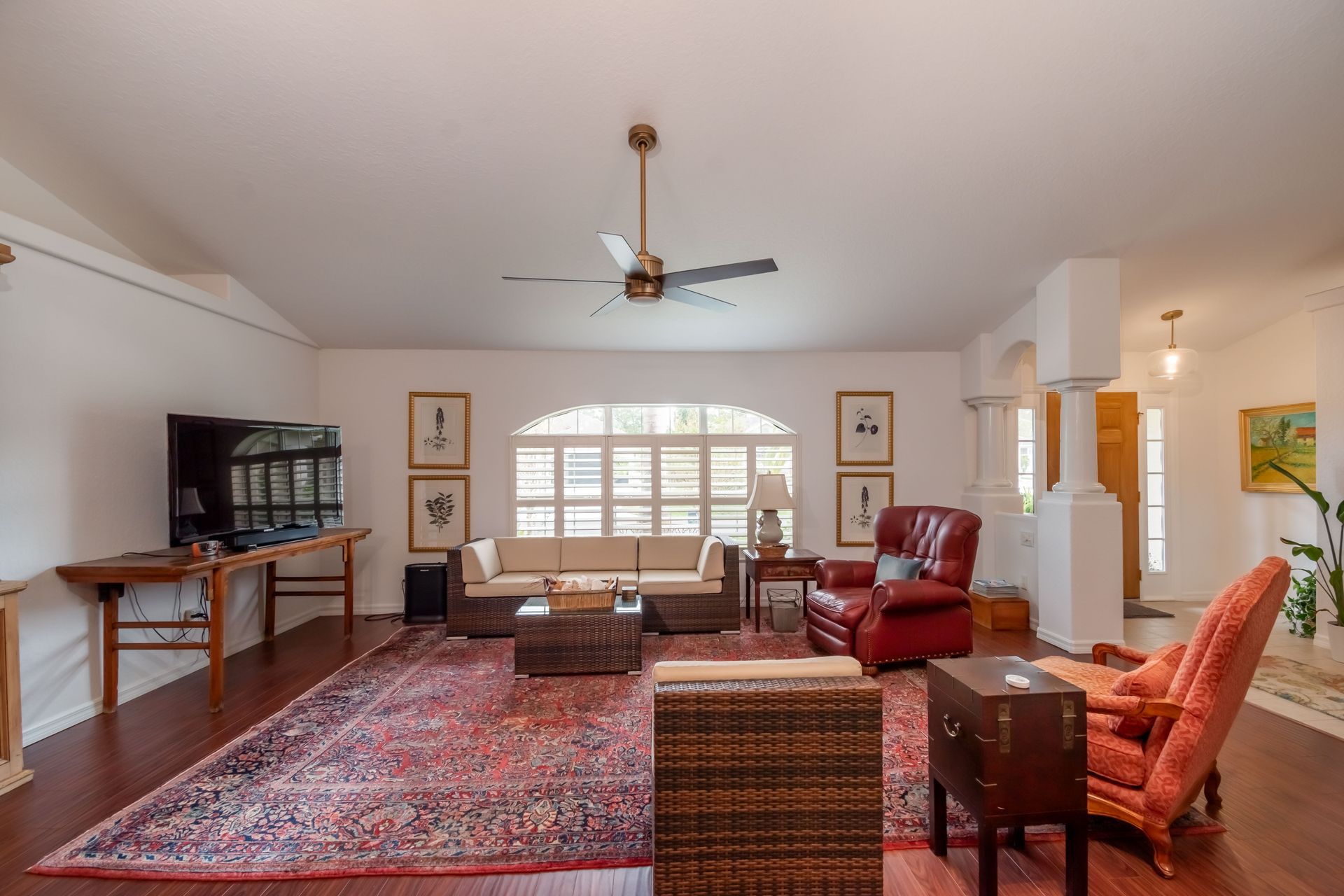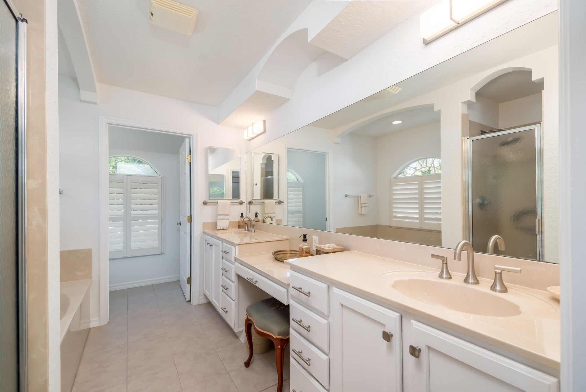 Nestled at the heart of Ocala within the gated subdivision of Woodland Estates, this property is highly accessible to shopping, downtown restaurants and entertainment, and hospitals and medical offices! The home features a total of 3-bedrooms and 2-baths with a split-bedroom floor plan, lots of natural light, and freshly painted interior walls and cabinets. The living area has attractive wood laminate floors, vaulted ceilings which add to the light and airy ambience, plant shelf, plantation shutters, and is directly open to the kitchen. The kitchen itself is a model of efficiency with a newer refrigerator and dishwasher, as well as a pass-through to the breakfast room with a separate walk-in pantry. The primary suite is incredibly spacious and features a large walk-in closet and a private en-suite bath with a separate shower, tub, and dual vanities. Newer carpeting runs throughout each of the bedrooms, and updated light fixtures and ceiling fans run throughout the entire home. Roof and water heater were installed in 2021, and an advanced air filtration system has been installed on the HVAC. The insulated garage doors and split heat pump keep the garage comfortable year-round, making laundry, chores, and projects at the workbench a breeze. Experience lovely views of the mature landscaping from the screen enclosed and covered back porch– a truly relaxing space perfect for year-round use! Beyond, the backyard is bi-level and provides plenty of space to play catch with loved ones or fetch with your four-legged companions. Woodland Estates offers residents a large community pool and a club house to enjoy, making this home a wonderful option to consider. Don’t miss out on this opportunity to live comfortably in the heart of Ocala!