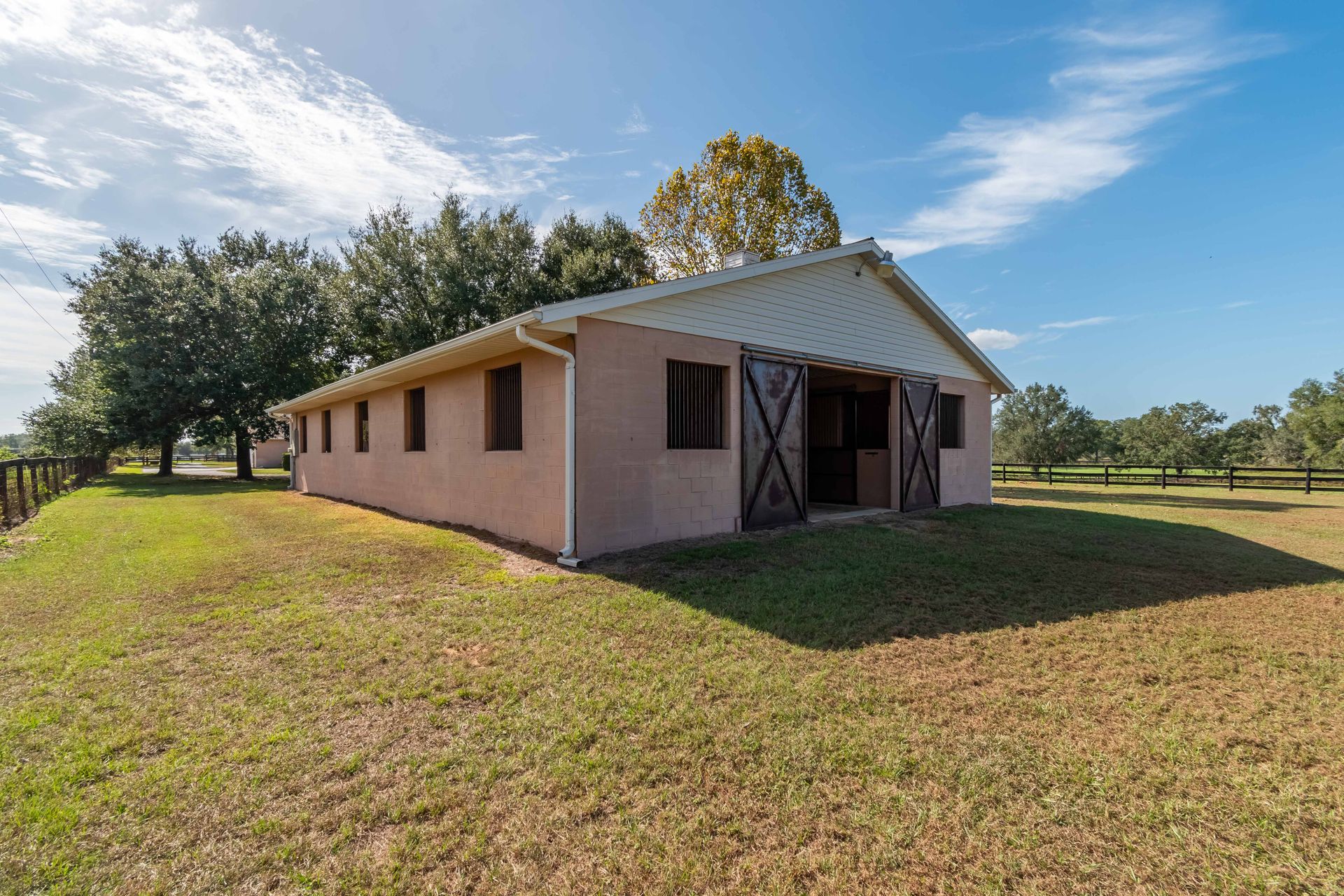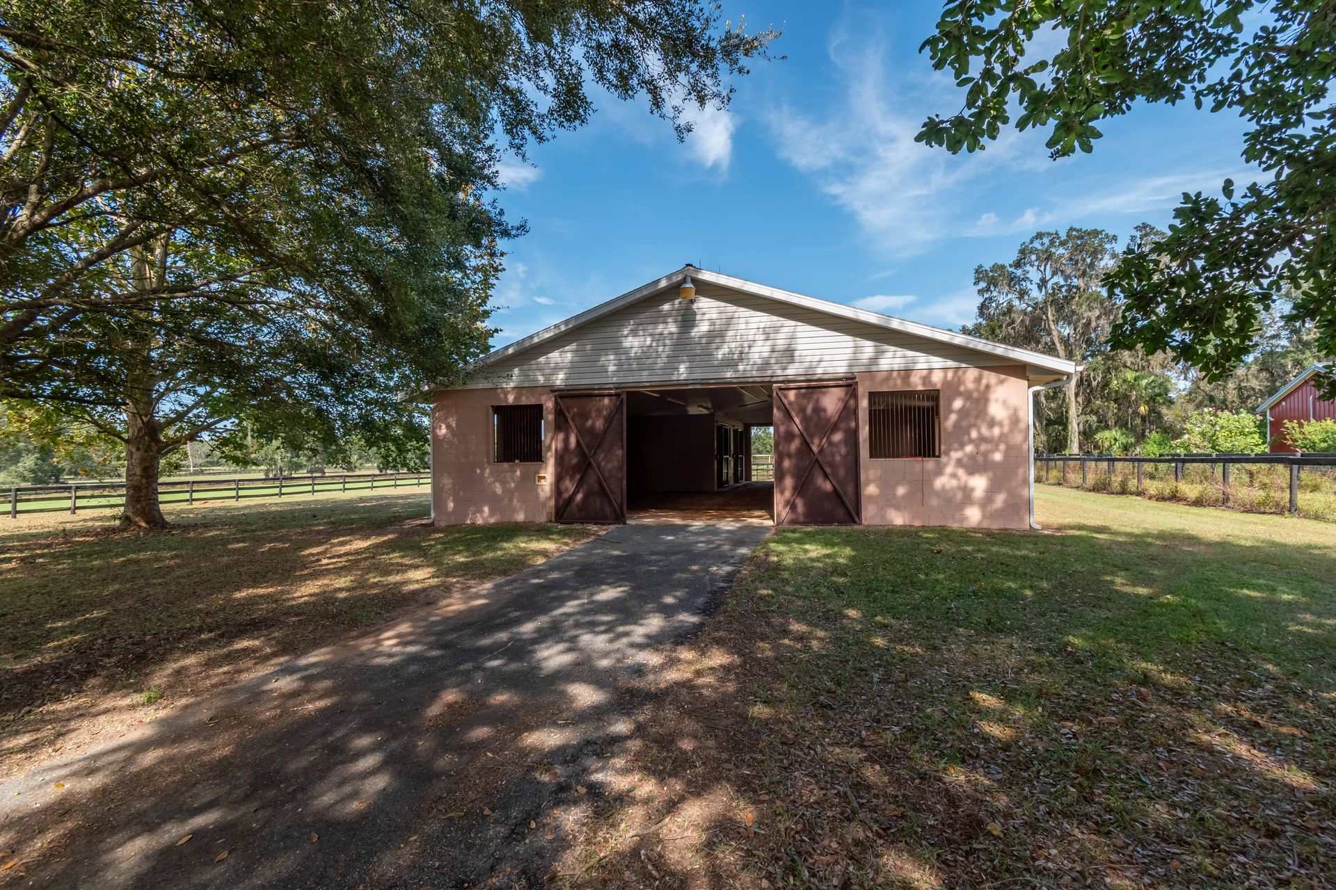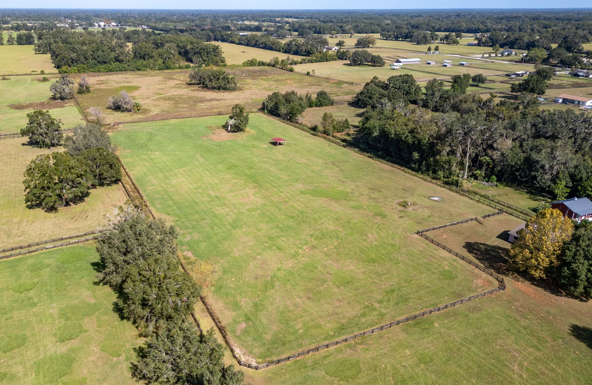 Set within the picturesque equestrian community of The Meadowlands, this 10-acre farm offers a tranquil slice of Central Florida living with exceptional versatility for equestrians. Perimeter fenced and gated, the property boasts wide-open spaces and a serene setting. The classic ranch-style home is both inviting and functional, featuring a charming covered front porch, gentle shade from mature oaks, and tasteful landscaping. Inside, the home features a split-bedroom floor plan that includes a total of 4 bedrooms, 3.5 baths with over 2,200 sqft and a dedicated home office ideal for remote work or personal projects. The living room provides a bright and spacious gathering area with a cozy fireplace and French doors that open to the back lanai. The kitchen is well-equipped with wood cabinetry, black appliances, a tiled backsplash, and a large breakfast bar, seamlessly flowing into a sunny breakfast nook with tranquil backyard views. The primary suite is ideal for relaxation, offering a generous layout with its own fireplace, a walk-in closet, and an en-suite featuring dual sinks, a glass-enclosed shower, and a luxurious garden tub. A secondary bedroom includes private access to the shared garden tub, while two additional bedrooms provide flexibility for guests or family and share a common bathroom. The home’s outdoor living spaces are equally appealing– a covered lanai includes tongue-and-groove ceilings and a ceiling fan, providing a comfortable space for a morning coffee, while the adjoining open air patio is perfect for outdoor dining and entertaining. Equestrians will appreciate the center-aisle barn, which includes 4 stalls, hot water, and a spacious central area with the potential to finish into additional stalls if desired. Two established paddocks offer ample space for horses, with plenty of potential to create more paddocks or install a riding arena tailored to your needs. Located just 20 minutes from the World Equestrian Center, this property provides easy access to year-round competitions and events, while the community of The Meadowlands offers endless riding opportunities for equestrians of all disciplines. Perfectly situated between Ocala and Gainesville, this farm offers the perfect blend of privacy, convenience, and equestrian potential!