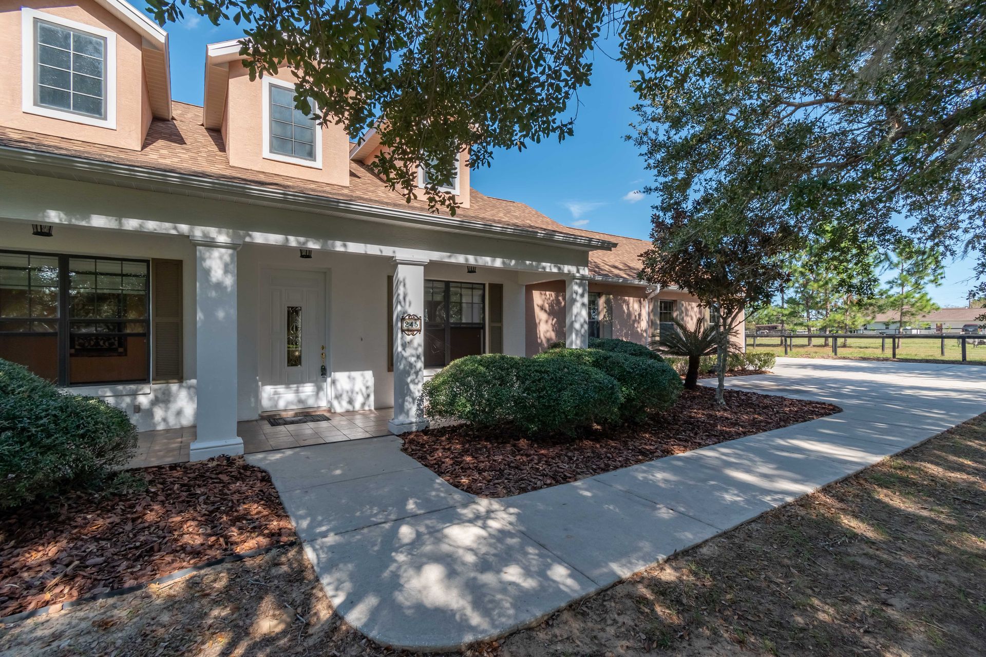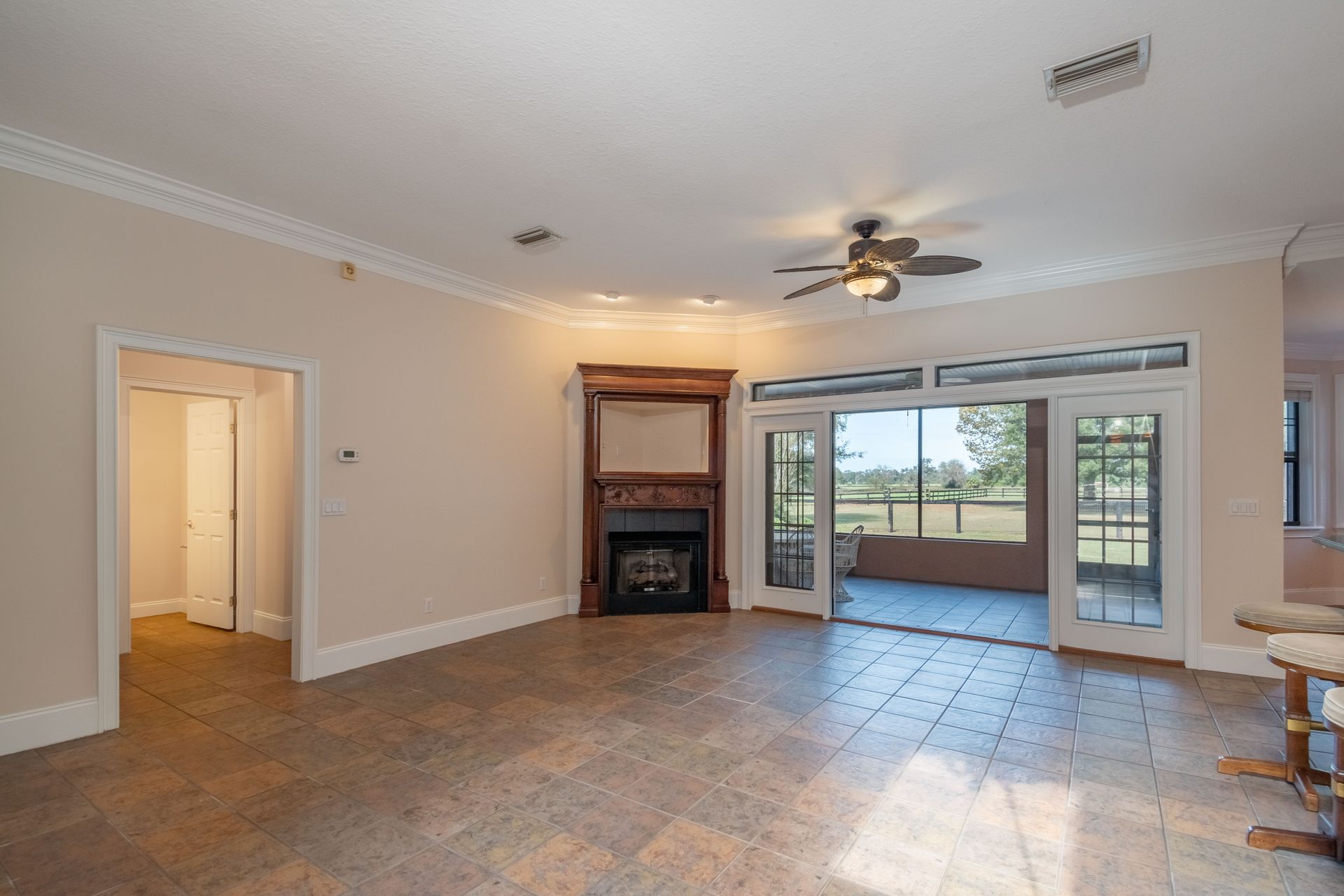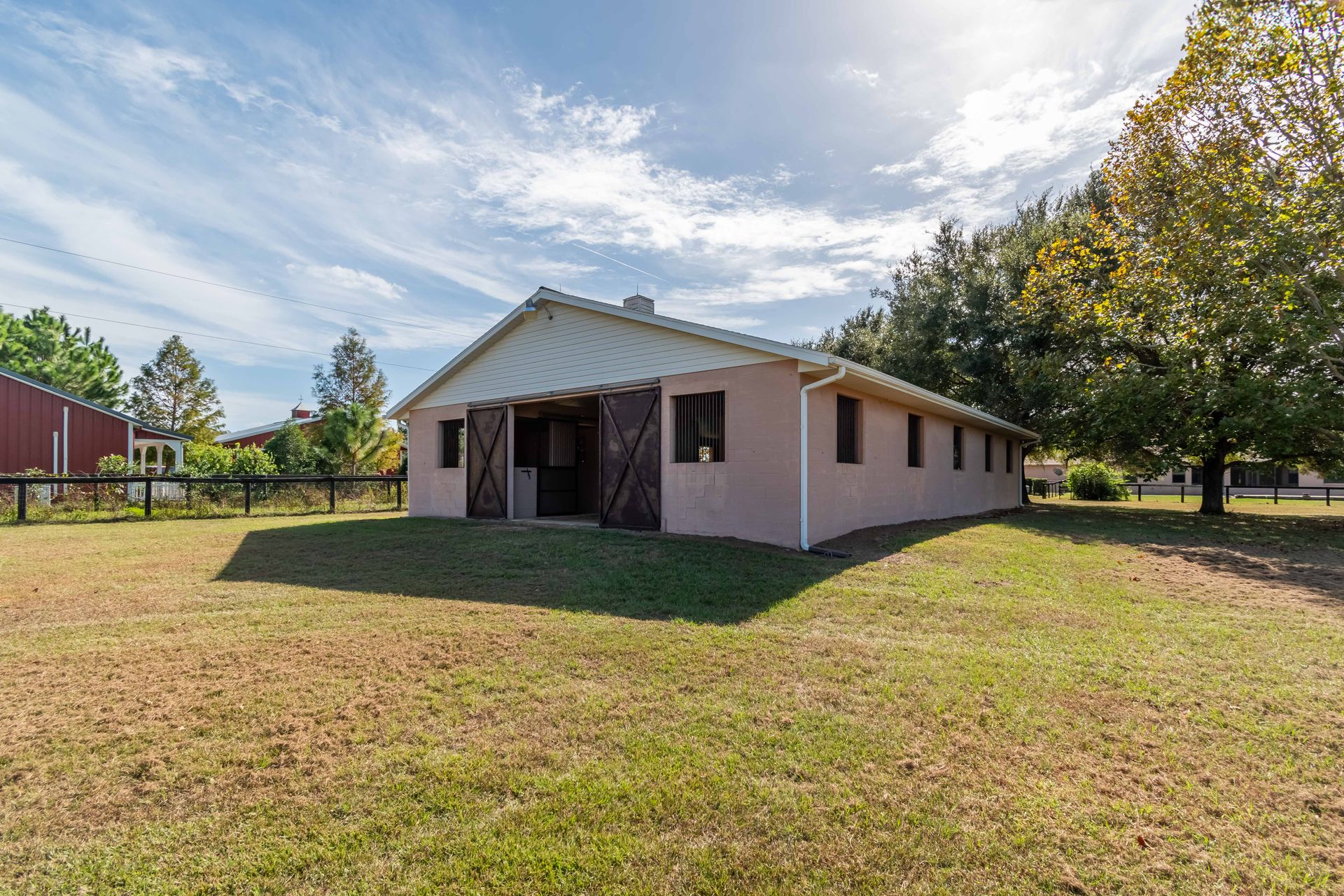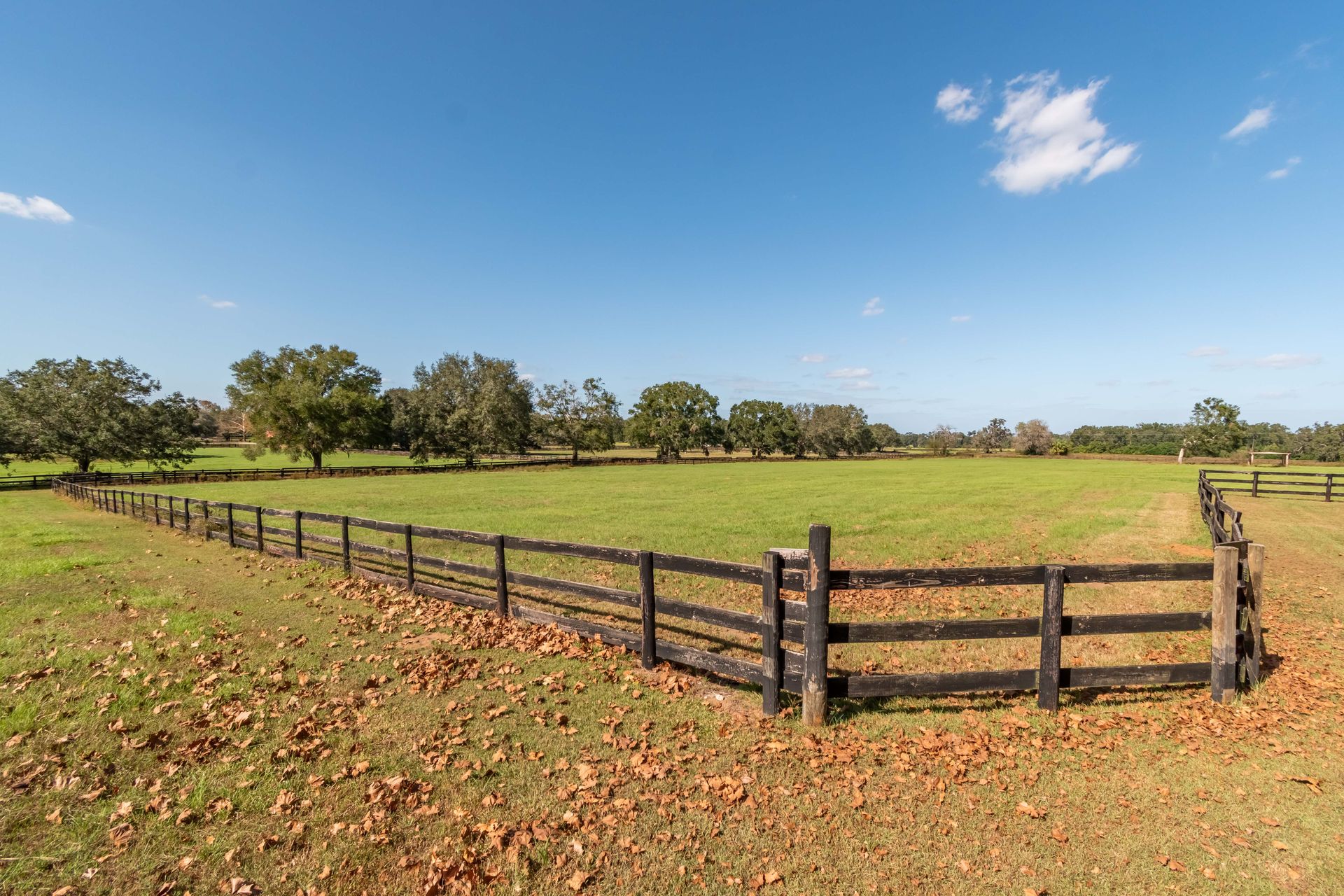 Set within the picturesque equestrian community of The Meadowlands, this 10-acre farm offers a tranquil slice of Central Florida living with exceptional versatility for equestrians. Perimeter fenced and gated, the property boasts wide-open spaces and a serene setting. The classic ranch-style home is both inviting and functional, featuring a charming covered front porch, gentle shade from mature oaks, and tasteful landscaping. Inside, the home features a split-bedroom floor plan that includes a total of 4 bedrooms, 3.5 baths with over 2,200 sqft and a dedicated home office ideal for remote work or personal projects. The living room provides a bright and spacious gathering area with a cozy fireplace and French doors that open to the back lanai. The kitchen is well-equipped with wood cabinetry, black appliances, a tiled backsplash, and a large breakfast bar, seamlessly flowing into a sunny breakfast nook with tranquil backyard views. The primary suite is ideal for relaxation, offering a generous layout with its own fireplace, a walk-in closet, and an en-suite featuring dual sinks, a glass-enclosed shower, and a luxurious garden tub. A secondary bedroom includes private access to the shared garden tub, while two additional bedrooms provide flexibility for guests or family and share a common bathroom. The home’s outdoor living spaces are equally appealing– a covered lanai includes tongue-and-groove ceilings and a ceiling fan, providing a comfortable space for a morning coffee, while the adjoining open air patio is perfect for outdoor dining and entertaining. Equestrians will appreciate the center-aisle barn, which includes 4 stalls, hot water, and a spacious central area with the potential to finish into additional stalls if desired. Two established paddocks offer ample space for horses, with plenty of potential to create more paddocks or install a riding arena tailored to your needs. Located just 20 minutes from the World Equestrian Center, this property provides easy access to year-round competitions and events, while the community of The Meadowlands offers endless riding opportunities for equestrians of all disciplines. Perfectly situated between Ocala and Gainesville, this farm offers the perfect blend of privacy, convenience, and equestrian potential!