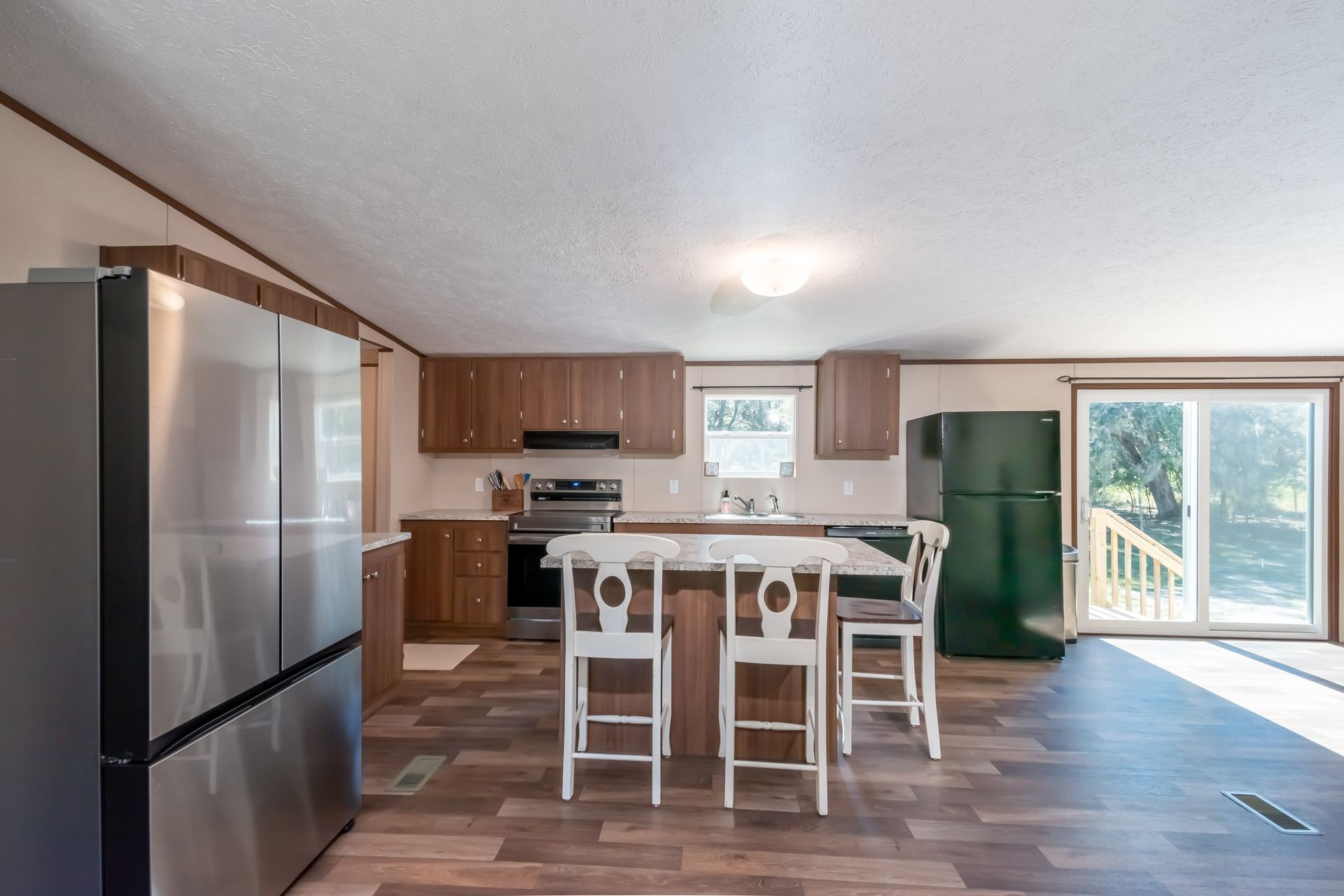 Overlooking 6+ acres of Citra countryside, this charming property provides plenty of potential and an ideal location! The property is gently shaded by mature trees with several areas that are nicely cleared for plenty of flexibility to build additional structures as desired. Built in 2023 and offering a total of 4-bedrooms and 2-baths, the charming double-wide mobile features vaulted ceilings, luxury vinyl plank flooring, and plenty of natural light throughout. The maximum amount of insulation has been added to the floors, walls, and ceilings, ensuring that the optimal temperature is incredibly easy to maintain in both warm and cool weather conditions. Conversation flows easily throughout the main spaces with the kitchen, living area, and formal dining area all being open to one another. The kitchen is well-equipped with lots of cabinet space, some stainless steel appliances, and a center island with a breakfast bar. Just off of the kitchen is a designated laundry room with both washer and dryer, which is a rare find in a mobile home and makes it easy to keep chores moving throughout the day. Each of the four bedrooms are perfect for unwinding and getting a good night sleep, with the larger layout Primary bedroom being the real stand-out thanks to a large walk-in closet and a newly updated private en-suite bathroom with a step-in shower, new fixtures, and vanity. The large backyard provides plenty of opportunity to establish a garden or play area and currently features a sparkling above-ground saltwater pool to enjoy during the warmer months! Zoned A-1, this property has plenty of potential to be converted into an agricultural property such as a small horse farm or hobby farm with a little vision. Citra is perfect for those looking to experience some of the best outdoor recreation options that the area has to offer including nearby Orange Lake, Lake Ocklawaha, several springs and state parks, and much more. Located just a short, scenic drive from both Ocala and Gainesville’s variety of shopping, dining, event, and medical options,, this property offers the perfect blend of convenience and charm! An Additional 2 Acres is available for purchase.