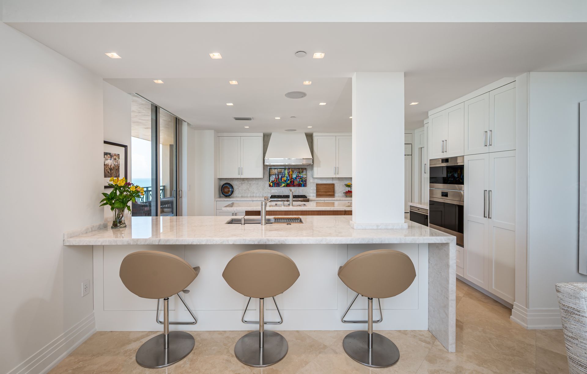 Welcome to your dream home at the Villas of Positano! This spacious 3,299 sq ft condo offers 3 bedrooms & 3.5 bathrooms, perfectly located on a prime NE corner for unbeatable oceanfront views. From the moment you step through the private foyer with its elegant walnut entry doors, you'll notice the attention to detail. The kitchen is a chef's delight, Dutch Made Cabinetry fitted with top-notch appliances from Sub-Zero, Wolf, & Miele, plus a 6-burner gas grill that's perfect for culinary adventures. Imagine hosting friends in a space with floor-to-ceiling windows, offering stunning views of the ocean, Intracoastal, & city lights. Relax on one of the two oversized covered balconies, enjoy upgraded lighting, and control your space with motorized shades. 2 newer AC/s. Private 2-car garage with plenty of storage