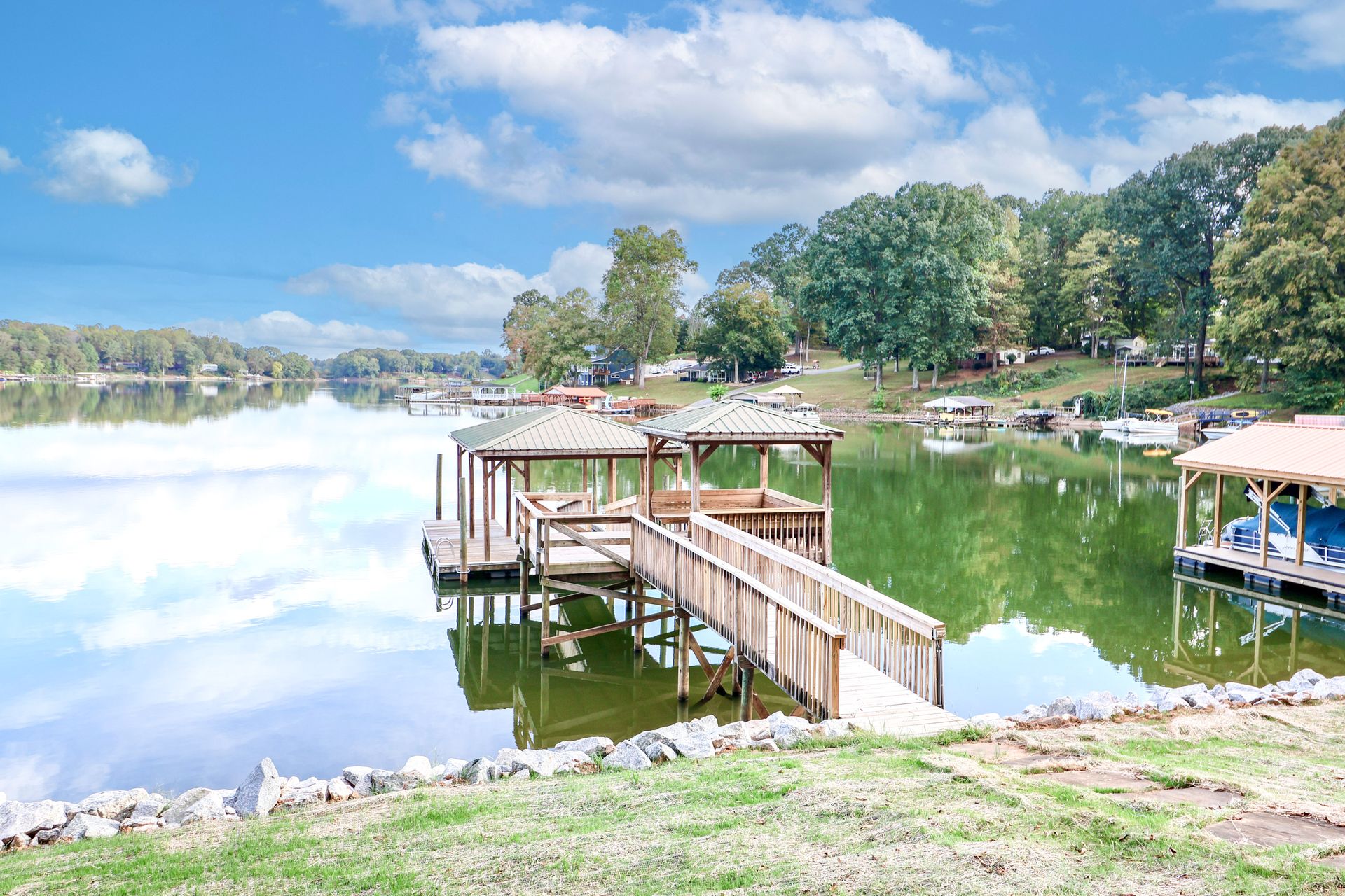 This 1964 lake house has been completely transformed and now looks like 2025 new construction. Every surface has been updated, and you will not be disappointed. Gutted to the studs with new plumbing and electrical throughout, this home features a fabulous new kitchen with modern appliances, a living room with fireplace, and an amazing 675 square foot covered deck with a fireplace and million-dollar lake views. The main level offers two bedrooms and one full bath, along with a half bath. The walkout basement includes a family room with working fireplace, sink, and refrigerator, plus two additional rooms that can serve as a bunk room and flex space, along with a third full bath. The septic system was installed in 2015 and is rated for two bedrooms, but the home provides plenty of space to spread out with family and guests. Additional updates include an electric water heater (2025), furnace and central air (2015), roof (2015), and two thermostats for upstairs and downstairs. The dock has new electrical and a fan, and the garage—with a new door—offers lake views and works well for storage or a workshop, but is not suitable for vehicles or boats. Exterior updates include a new seawall, new driveway and parking areas, fresh landscaping, and new steps leading to the dock. Mountain Creek Park is located within one mile of the property.