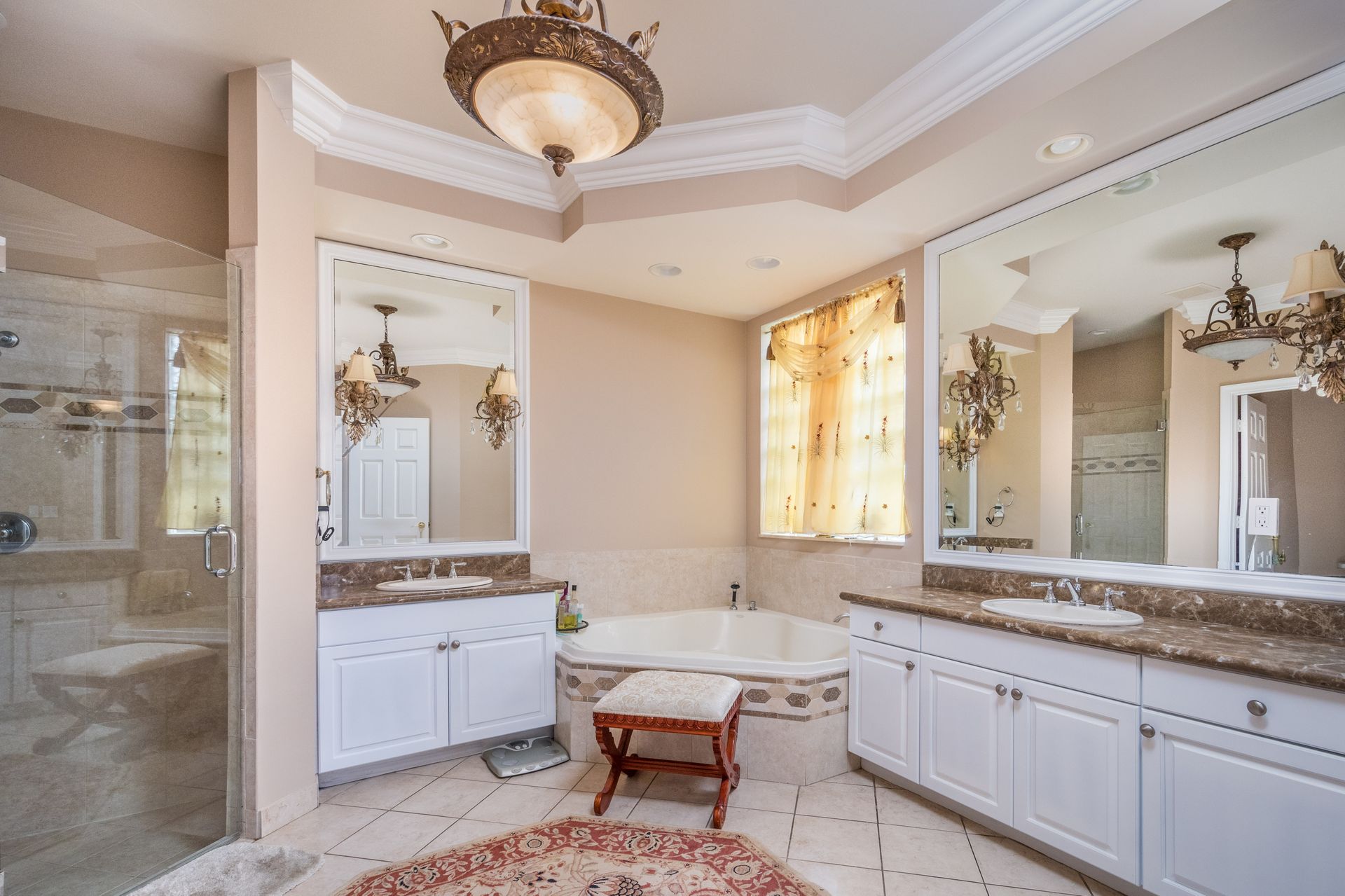 Elegant custom 1-story waterfront home on 13,000 sf lot with open floor plan and lake views throughout. Enjoy stunning sunsets as far as the eye can see! Located in the exclusive Maple Island neighborhood, this 3,536sf home features 5 bedrooms, 4-1/2 baths, dining room, an office and bonus/playroom. This stunning home has it all. Main bedroom suite includes dual walk-in closets, ensuite bath complete with dual vanities, as well as an adjacent office/sitting room. Recently renovated with new porcelain flooring throughout and BRAND NEW ROOF. 3-car garage with circular driveway. Community offers secured guard-gate access, recreation facilities and A+ rated schools. VIRTUAL (FACETIME/SKYPE) SHOWINGS AVAILABLE!
