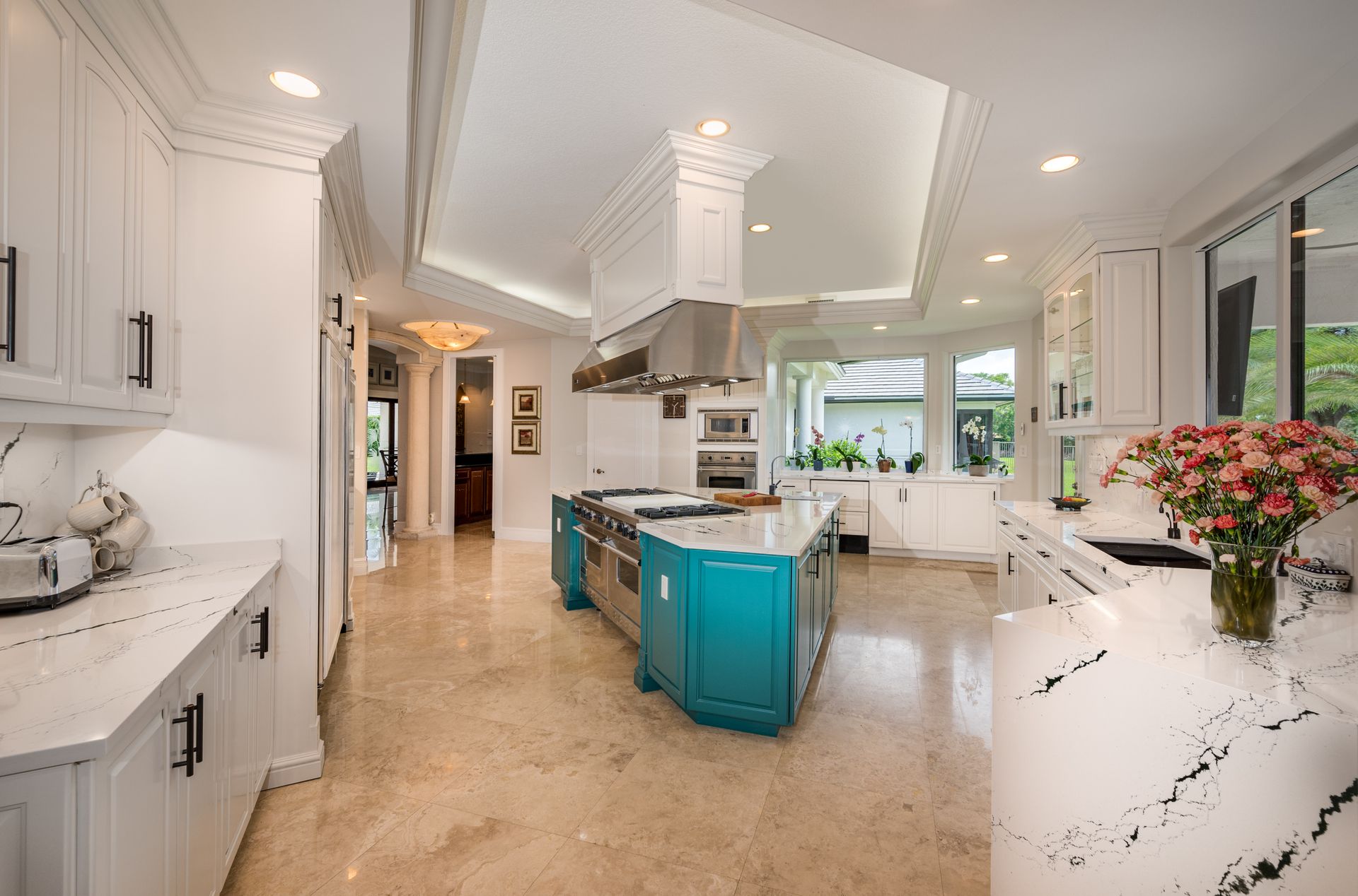 Spectacular, highly renovated estate on a private 58, 000 SF cul-de-sac lot w/ endless water views in prestigious guard gated Windmill Ranch Estates. New travertine circular driveway, 4 car garage & porte cochere welcomes you! Smart home with brand new flat tile roof, impact glass windows & doors, marble floors & custom millwork throughout. 5 bedrooms, 6 1/2 baths, master suite boasts large walk-in closets, master bath w/ spa & sauna. New chef's kitchen w/ top of the line Viking appliances - Viking 60 gas range, Sub Zero refrigerator & new Cambria countertops . Formal living room w/ wet bar, fireplace, volume ceilings and picture window displaying endless water & sunset views. Resort style backyard w/newly renovated heated pool & spa, extensive new travertine pavers & summer kitchen.