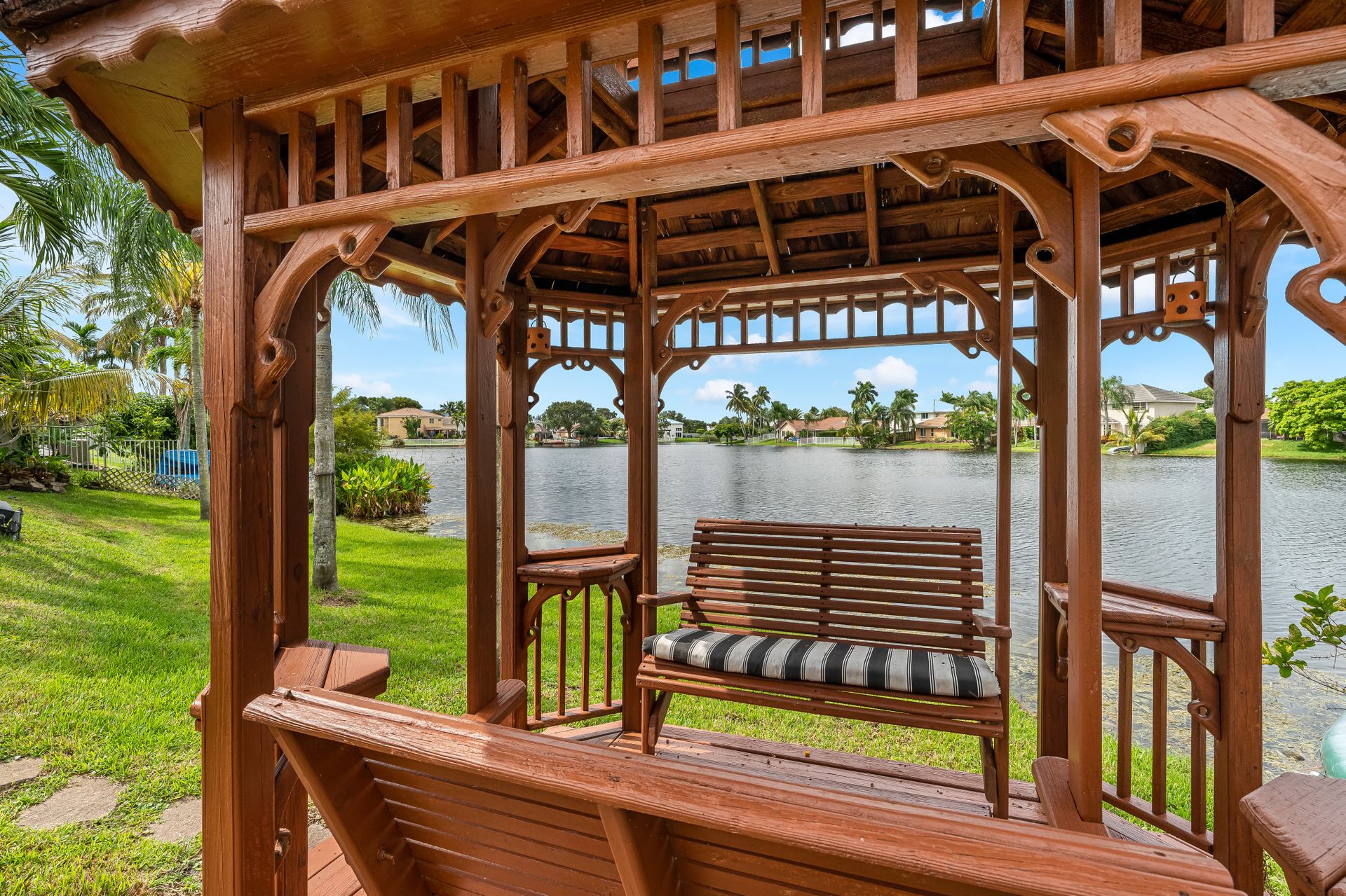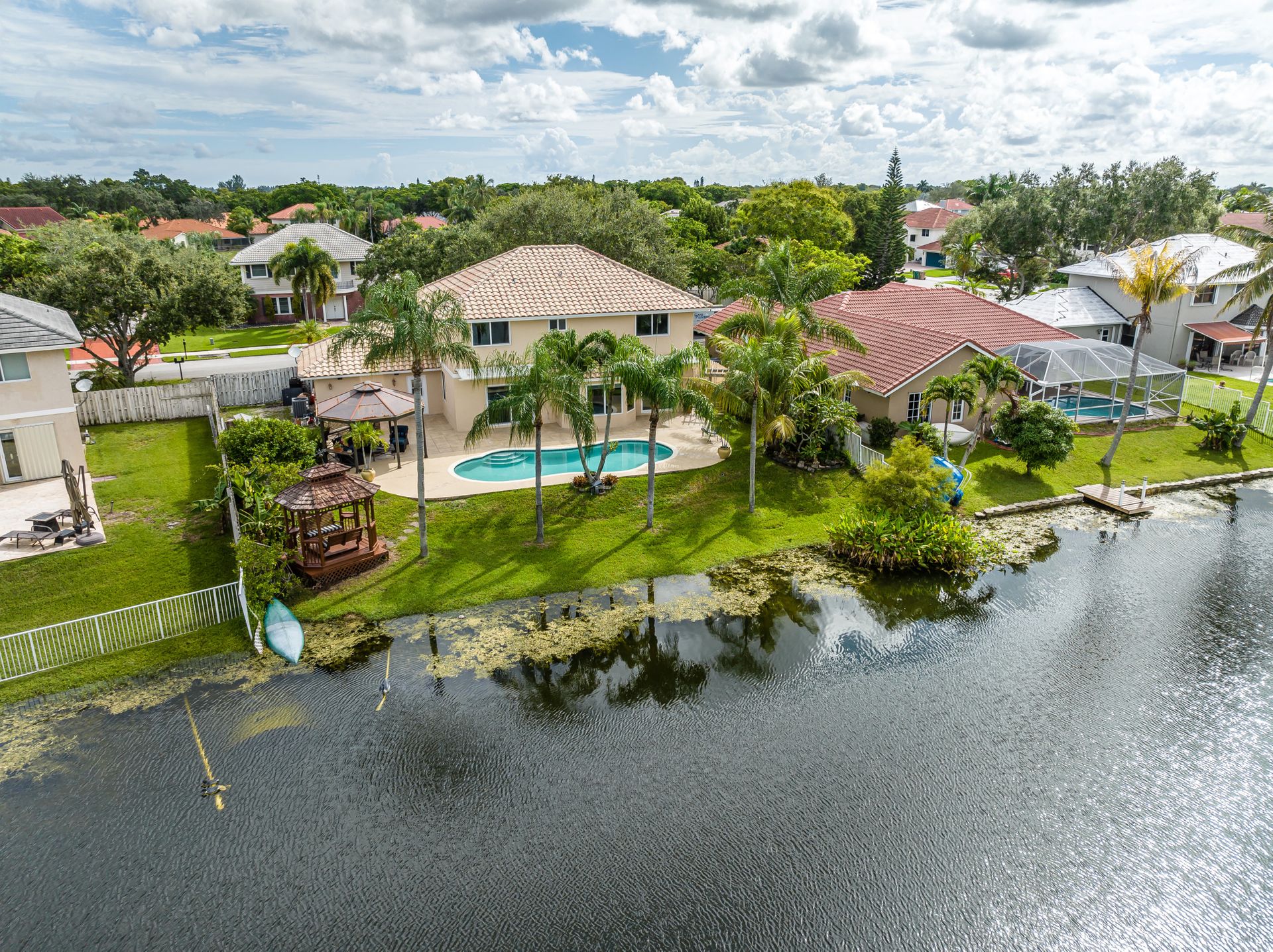 One of the prettiest views in Shenandoah! Enjoy breathtaking sunset & tropical breezes from the wide lake. Canoe or fish from your own yard. Sparkling pool, big patio & built in BBQ to splash & entertain. Big side yard has room for your boat or garden. Step inside to this large Harrisburg model complete with 4 bedrooms, 2.5 baths. Kitchen has been upgraded with wood cabinets, granite & stainless package and opens to the substantial family room. Bedrooms are large. Handy interior laundry room. Home is light & bright from the many high grade impact windows & doors. Rated garage door & 2008 tile roof for deep insurance discounts. Walk to Shenandoah Park with play area & splash pad. Walking path along parkway. Friendly, established development close to highways, shopping & TERRIFIC schools.