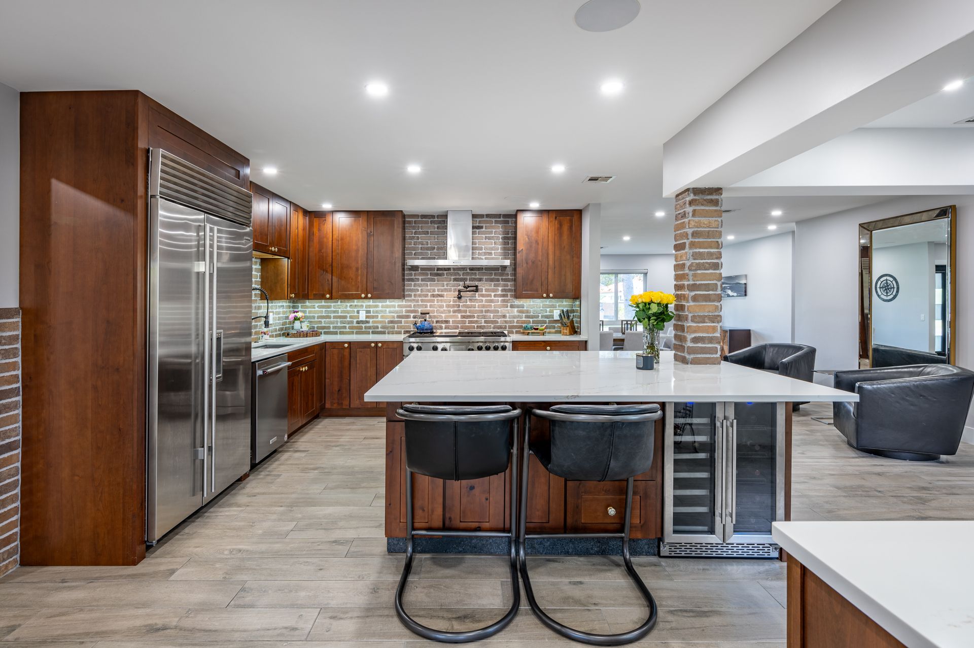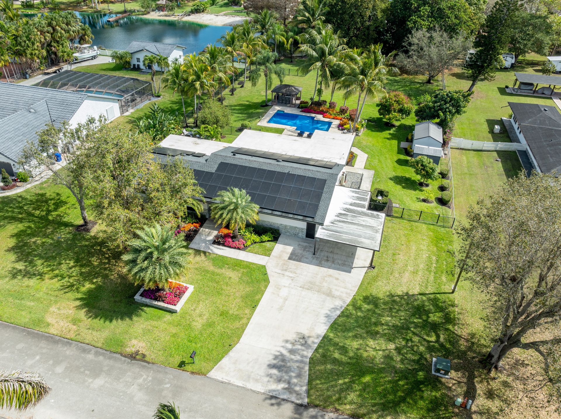 Introducing this impeccably-maintained & beautifully updated chic home on 1-ac in Southwest Ranches! Light & bright, move-in ready & private lake paradise are a few of this property's praises! Modern day functionality w/its open floor plan, triple-split bedroom layout for max privacy, Guest qtrs & detached Pergola w/full S/S Summer Kitchen! Modern updates thru-out the home from the beautiful porcelain tile to the wood floors, stone wall & brick accents ties modern day to nature. Functional kitchen island topped w/stylish quartz & enhanced w/ S/S top-of-the-line appliances inc: Wolf gas stove, Subzero fridge, wine cooler & M/W drawer! Entertain amongst the Tropical & fruit-treed foliage accenting new freeform salt water pool w/travertine deck, cozy fire pit area & sandy beach lake entry! Show less
