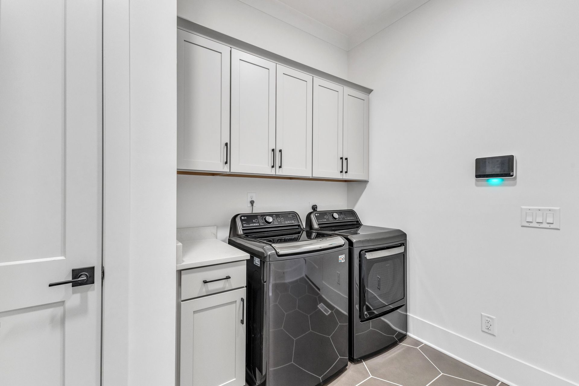A walk-through laundry room, located off the owner’s garage entrance, offers a spacious area for unloading and storage, with plenty of cabinetry and a built-in drop zone to keep everything organized. A guest suite/office with an en-suite bath and walk-in shower is also conveniently located on the main level.