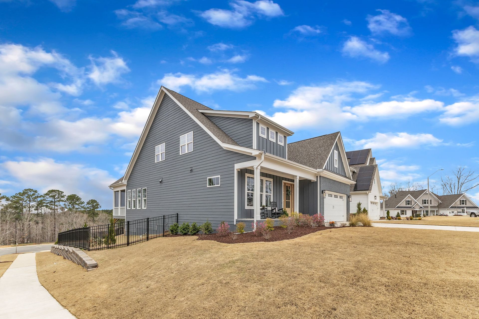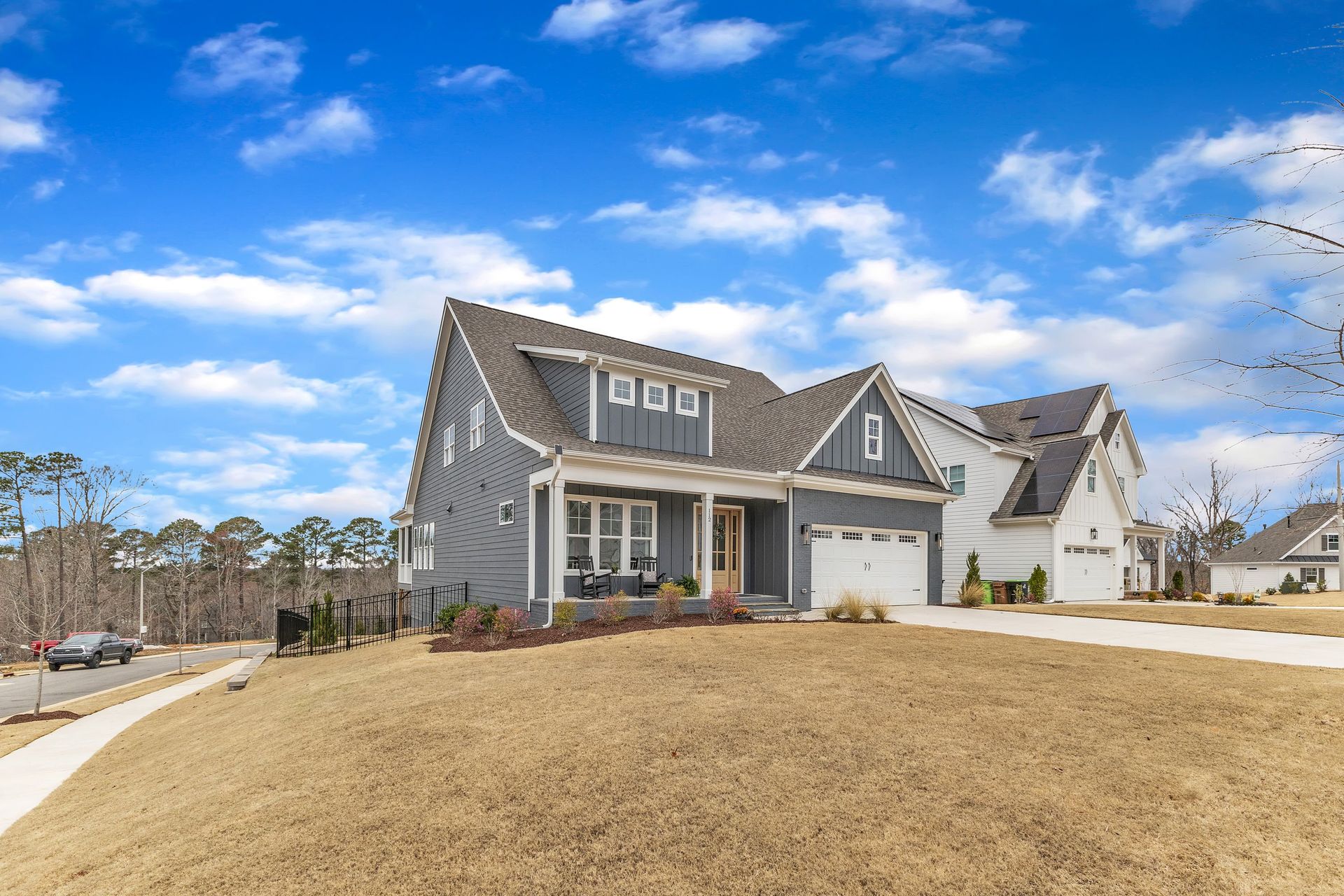 Discover the epitome of modern luxury in this better-than-new custom home, set on a private 0.29-acre lot in the sought-after Bluffs at Morgan Park. This one-year-old masterpiece seamlessly blends elegance, functionality, and breathtaking natural views with direct greenway access in the neighborhood, offering walkability to downtown Holly Springs while preserving ultimate privacy— with nothing buildable behind the property.