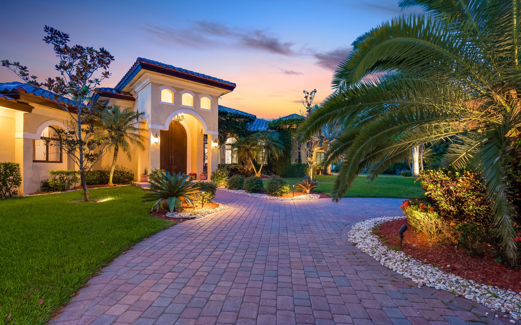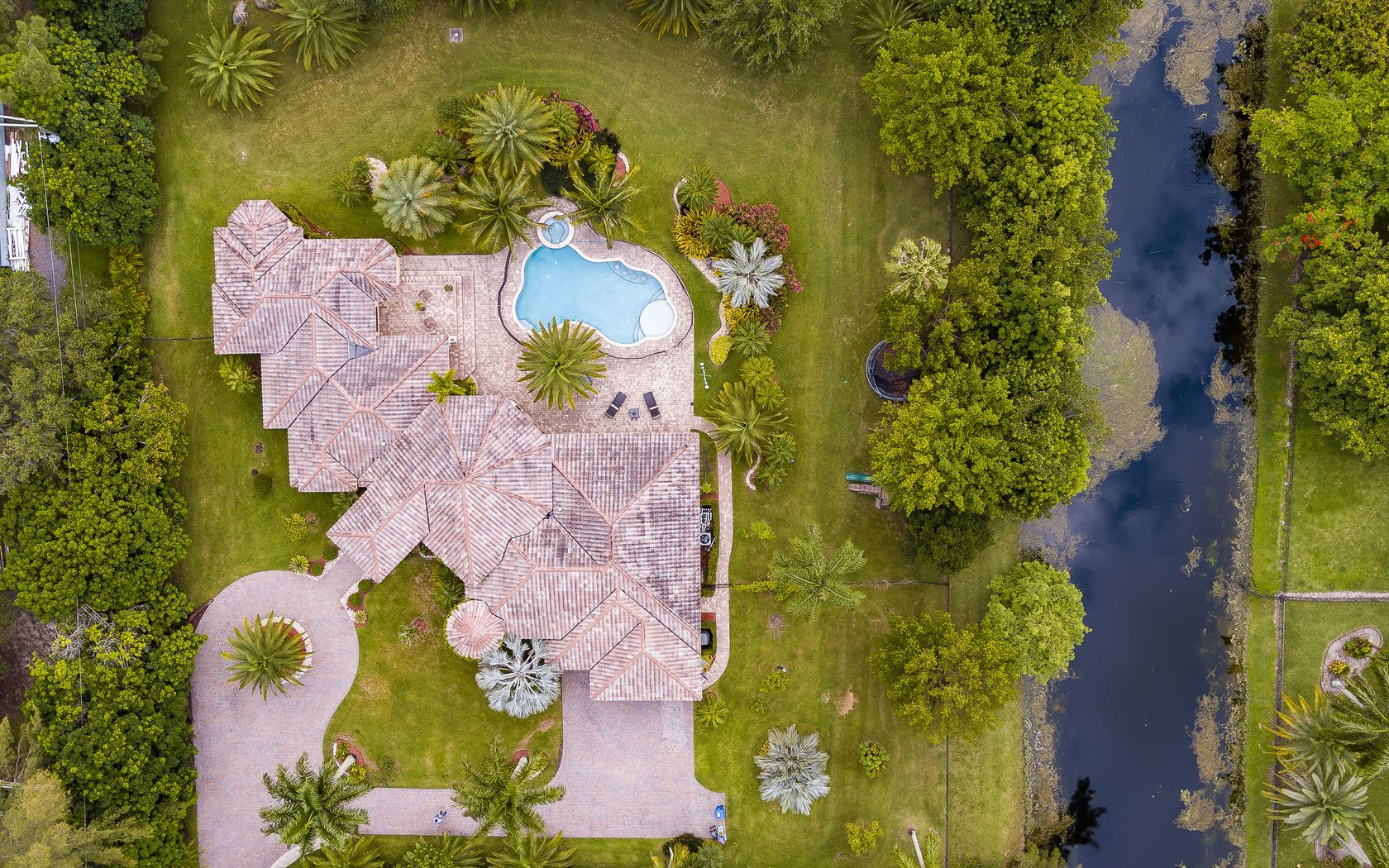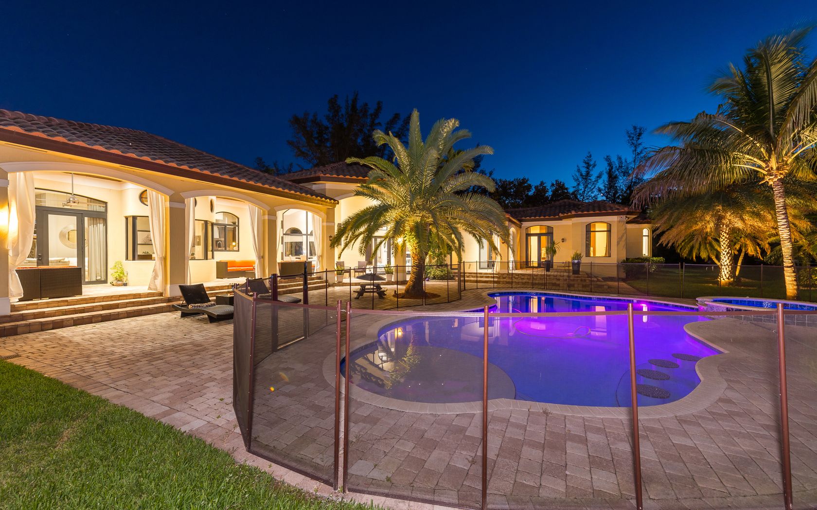 Magnificent custom built Mediterranean style acre+ estate with ultra modern finishes. Grand entry with long private drive leading to this 5/4.5 with 3 car garage. Foyer entry opens into the flowing floor plan with marble flooring, high ceilings, 14 ft river rock waterfall, natural lighting & gorgeous views. Kitchen boasts Thermador appliances, granite, custom cabinetry & cooking island. Huge family room with modern built ins. Large bedrooms with walnut floors and finished closets. Interior doors are imported from Brazil, impact glass and doors. Secluded yard with covered patios overlooking lushly landscaped yard and sparkling pool. Everything has been done in this 7 year old knock out, move right in. Terrific location with easy access to shopping, highways & excellent schools. A MUST SEE!