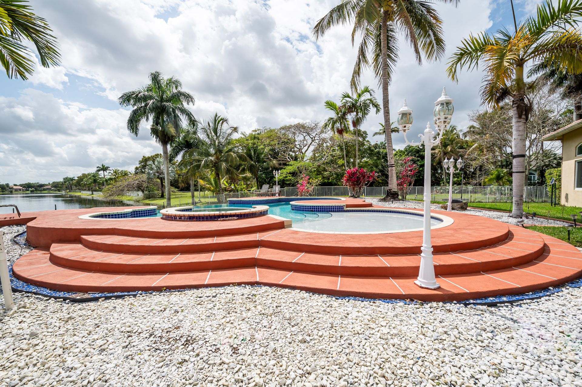 Experience luxury living in this stunning one-story home in the prestigious Emerald Springs gated community (only 74 homes). With 7 bedrooms, 6 bathrooms, a large office & a wet bar, this property offers ample space for large families. Almost 5, 000 sq ft of open concept living space on a 35, 054 sq ft lot. Infinity pool with a spectacular lake view. 14' ceilings & marble floors. Contemporary wood kitchen, granite countertops and Subzero fridge. Impact doors & windows. Tankless water heater & security system. 3 car garage (w/AC) & space for 15 cars. New roof is being installed. Low HOA dues. 165 IMAX Surround home cinema system negotiable. Gym equipment included. Newer AC units. Automatic sprinker system. Perfect location near major highways, shopping & entertainment. A delightful living!