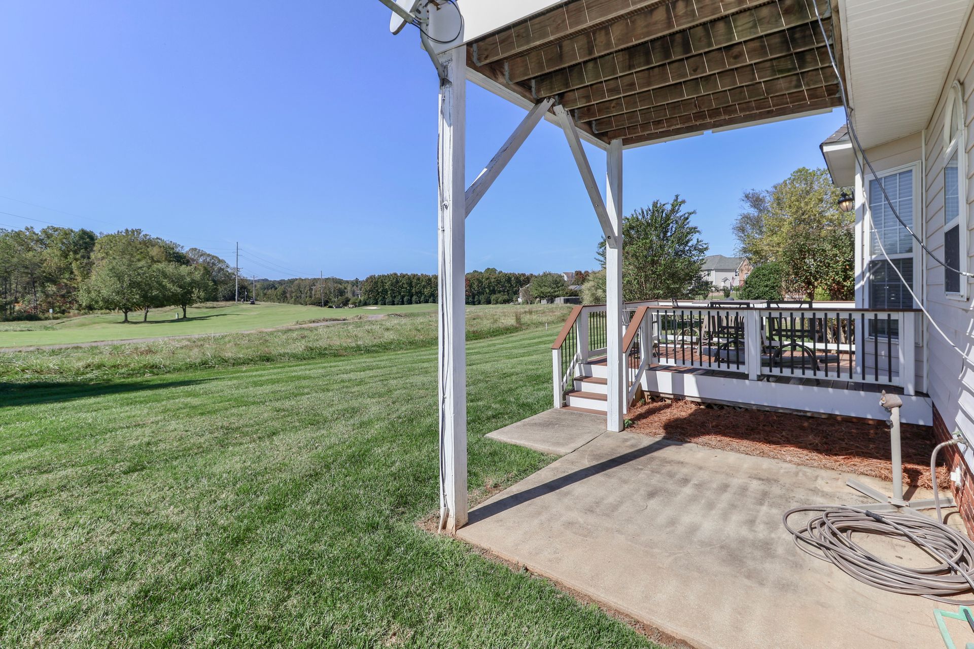 Nice home in great location on the #3 Hole of the Larkin Golf Course, Over the last few years this home has been painted throughout, updated handicap bathroom on main floor, Open eat in kitchen with bar, new refrigerator, electric range and microwave hood, and dishwasher, Pretty HW floors in living room/office and dining room, Nice plantation shutters, Gas logs in family room, Jack and Jill Bathroom between bedroom 2 and 3, Primary has a private deck, new flooring on deck 2023-24, washer and dryer remain with the home. A must-see in a great location. Per the seller, the roof is 15 years old.