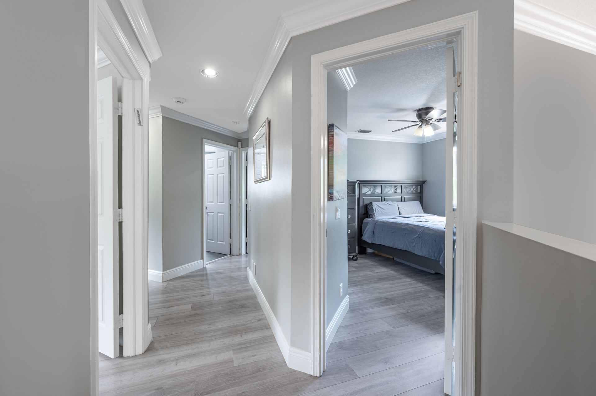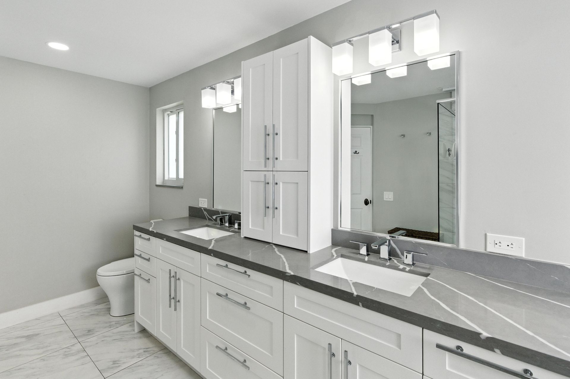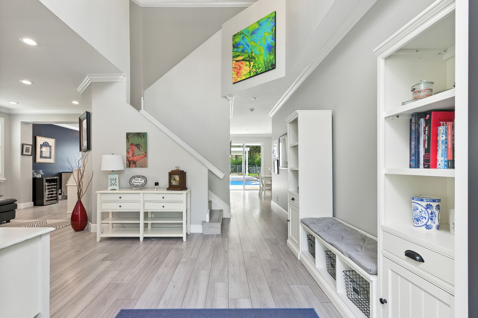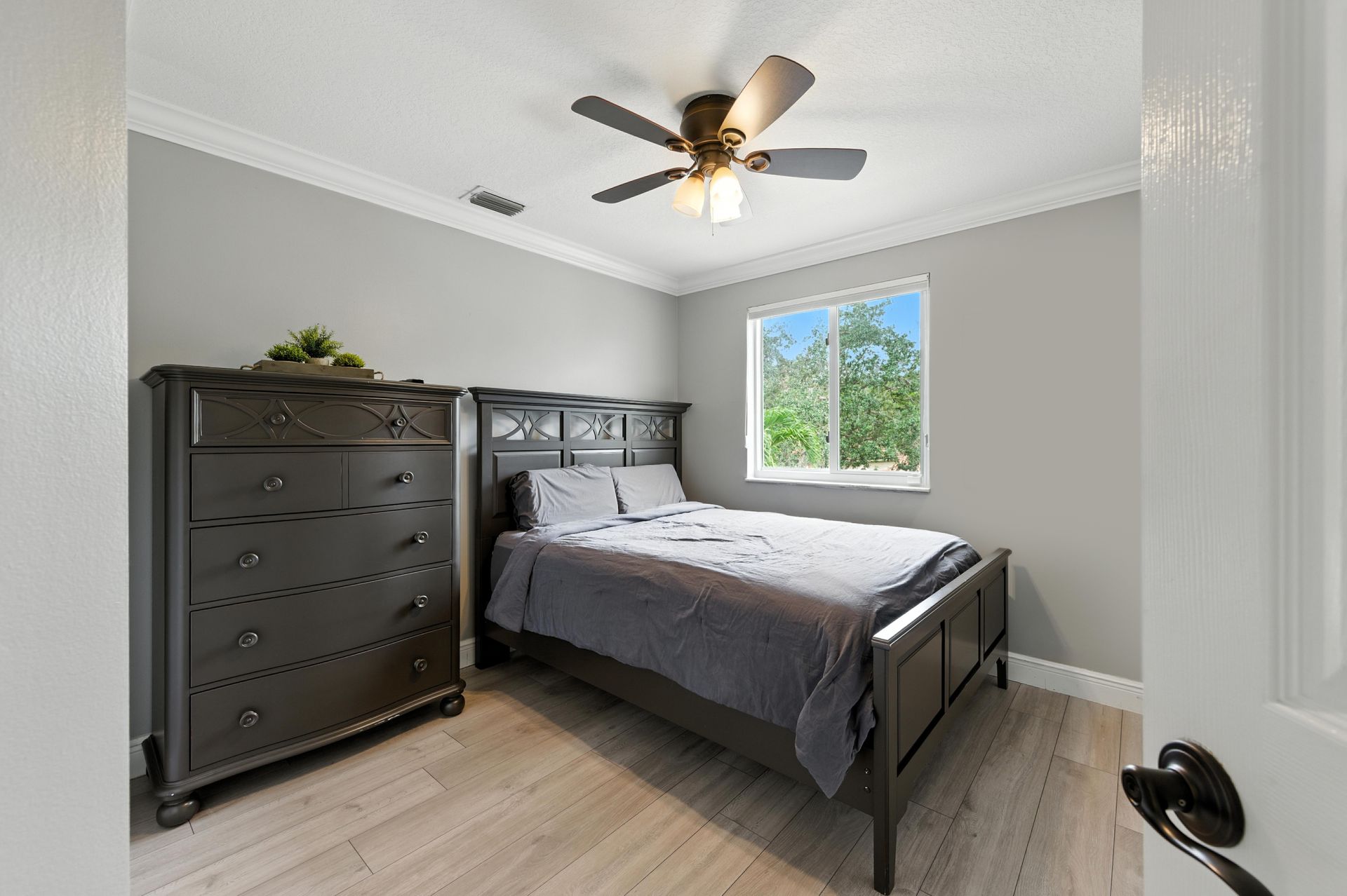 This resort-style modern home features hurricane-impact windows/doors (2023), an open kitchen with center island, and a private outdoor paradise. The saltwater pool was redesigned with waterfall features, new heater (2021), resurfaced in 2024 with a bonus sun ledge. A high-end cabana includes a full outdoor kitchen with pergola, granite countertops, bar seating, refrigerators, gas BBQ & griddle. Bathrooms were fully renovated in 2022. Engineered wood flooring throughout, custom millwork with crown molding, plantation shutters, custom built-ins (2022), and Closets by Design systems (2020). Ample storage, quiet cul-de-sac, and a spacious double lot with open space. Gated Community with pool, park, pickleball ball, & close to A schools, restaurants, retail, and library.