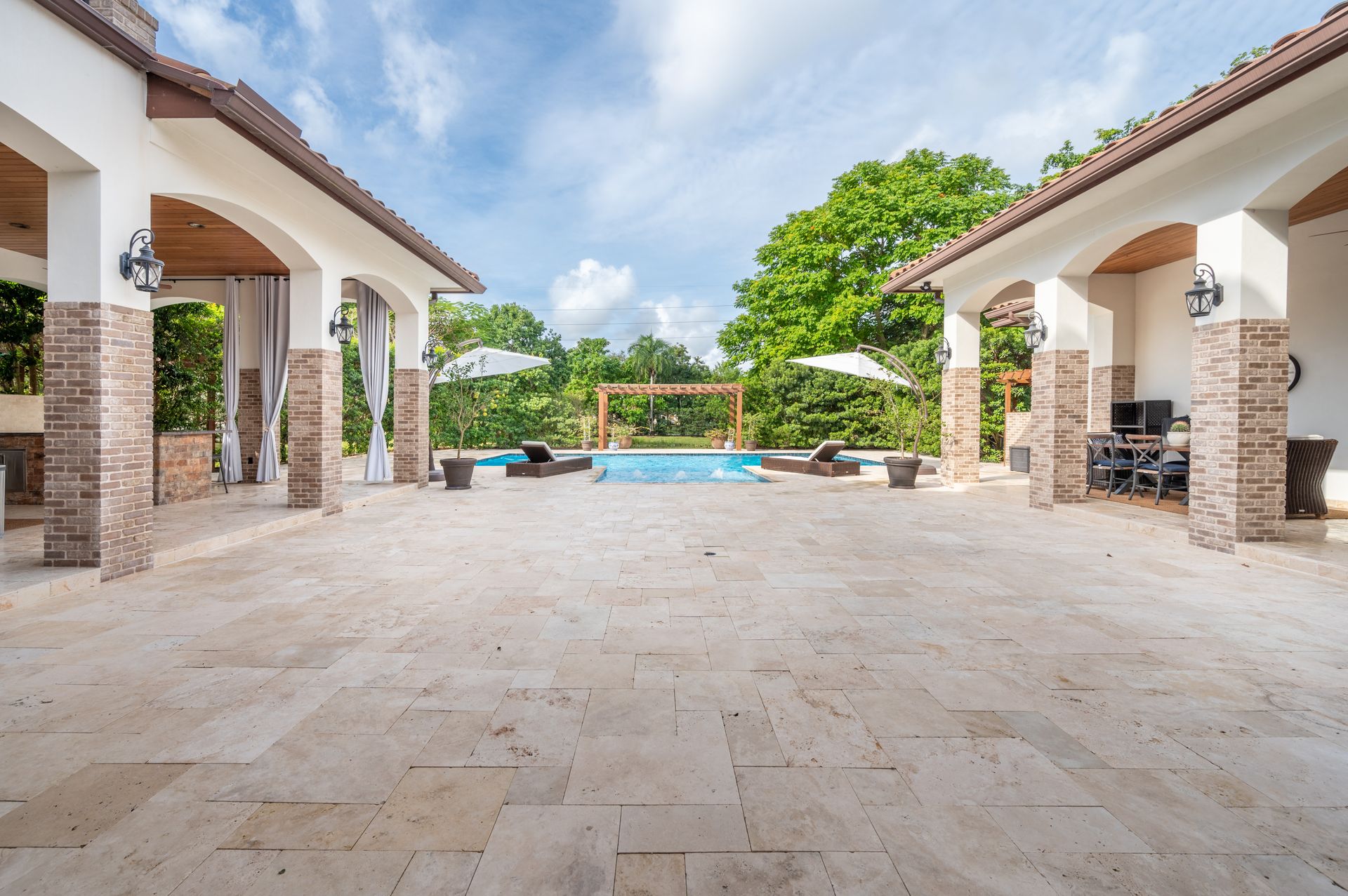 Luxury awaits you at this exquisite custom built mediterranean estate situated on an extremely private, gated, 2.5 acre lot in the heart of Southwest Ranches. This 5 bed + den, 6 bath, Courtyard home was custom built in 2019 w/ all of the high end features sure to impress. Private gated entry & expansive paver driveway w/3 car garage welcome you home. Light filled foyer w/ 24 volume ceilings in main living area, chefs kitchen w/ Viking appliances, gas cooking, Gaggenau espresso machine & Viking beverage center. Marble and wood flooring throughout & protected by all custom impact windows & doors. Embrace the Florida lifestyle w/ a Tuscan flair in your resort-style backyard w/custom salt water pool, pergola, travertine pavers, luxurious summer kitchen equipped w/ all the top appliances