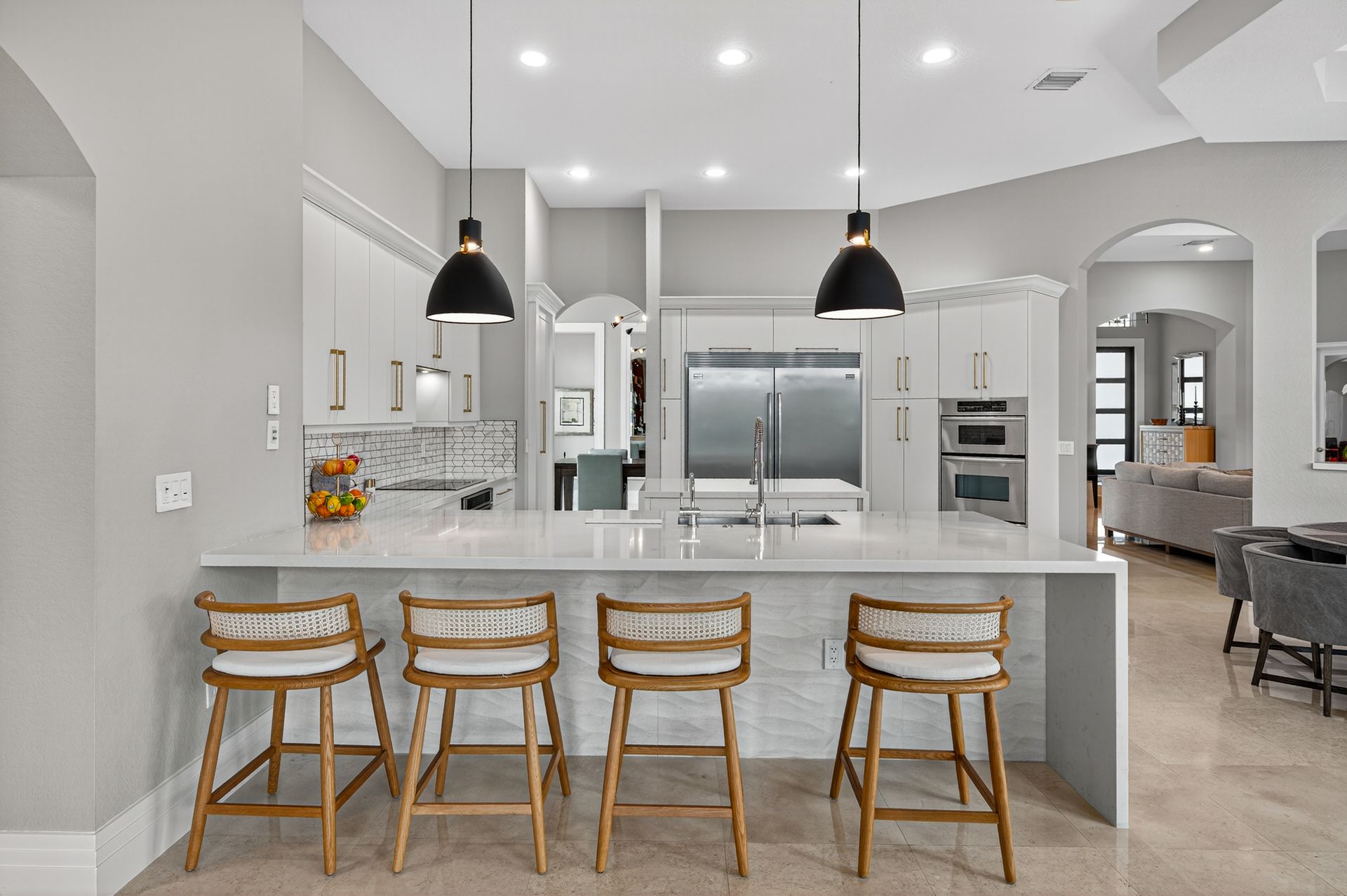 Welcome to the epitome of modern living in the gated Riverstone community. This expansive 4,635sf lakefront home features 6 bedrooms & 4.5 bathrooms. This completely updated home offers an open triple-split floor plan with 14-foot ceilings, complemented by a gourmet kitchen with premium stainless steel appliances. The master suite, with separate his and hers bathrooms, enhances luxury and comfort. Step outside to a private backyard oasis featuring an oversized heated pool/spa, perfect for relaxing and entertaining. Additional highlights include a new roof (2023), impact glass/doors (2021) and new AC units (2021). With a three-car garage and a generous 36,946-square-foot lot, this property perfectly blends style and functionality in a serene South Florida setting.